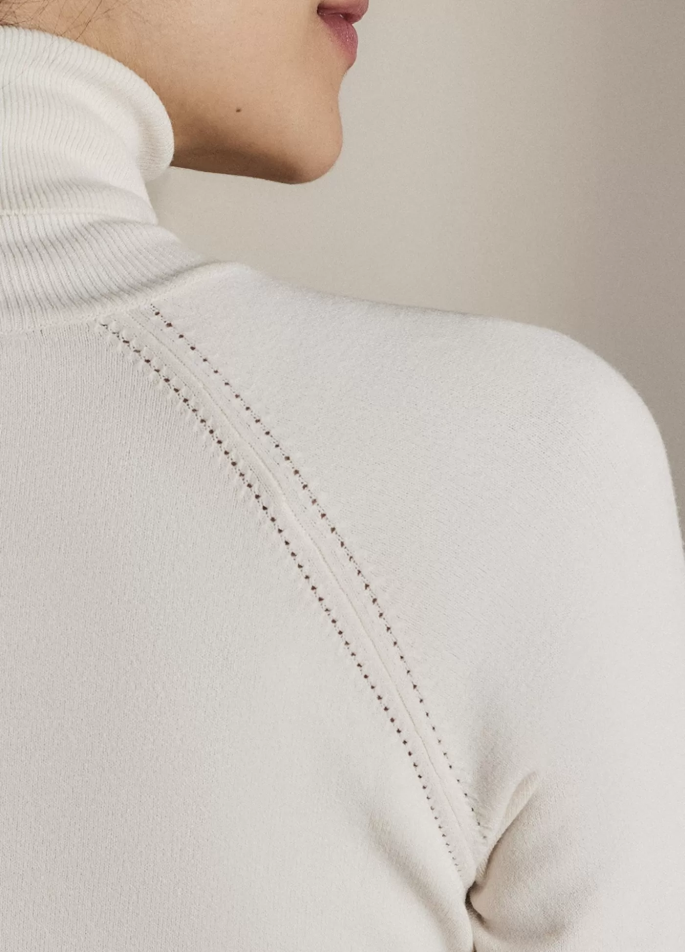 Een aansluitende coltrui van zachte kwaliteit met lange raglanmouwen.