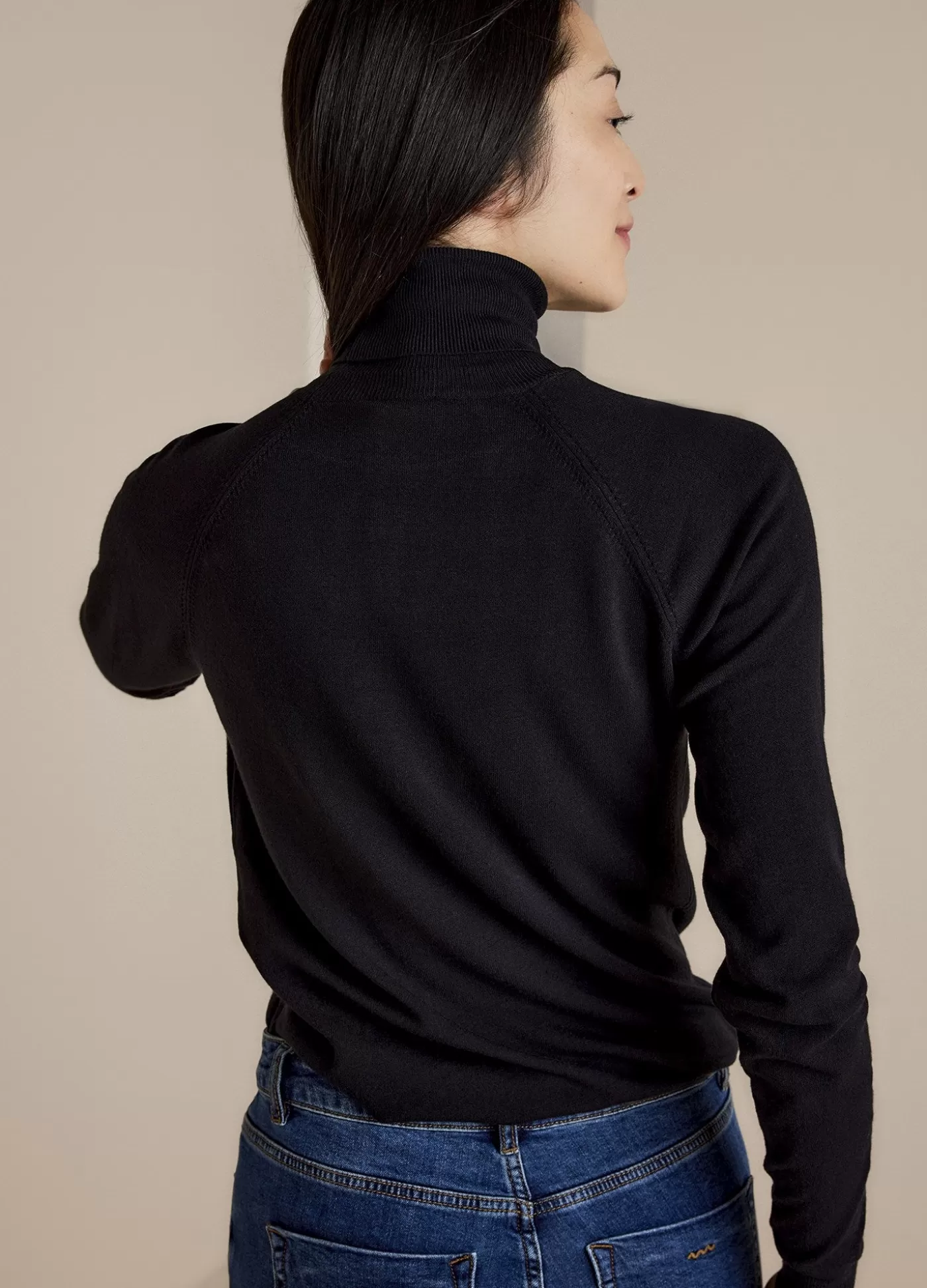 Een aansluitende coltrui van zachte kwaliteit met lange raglanmouwen.