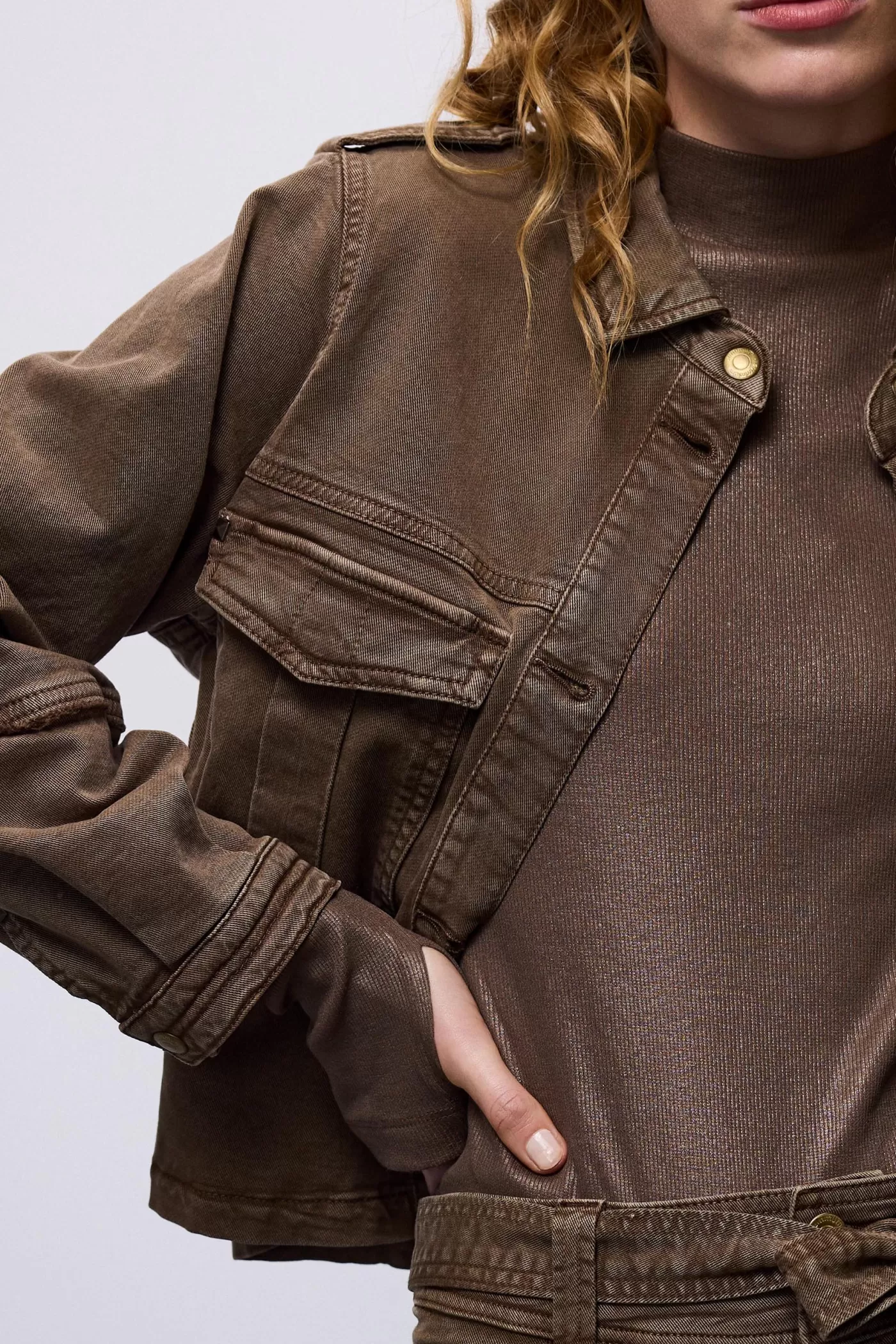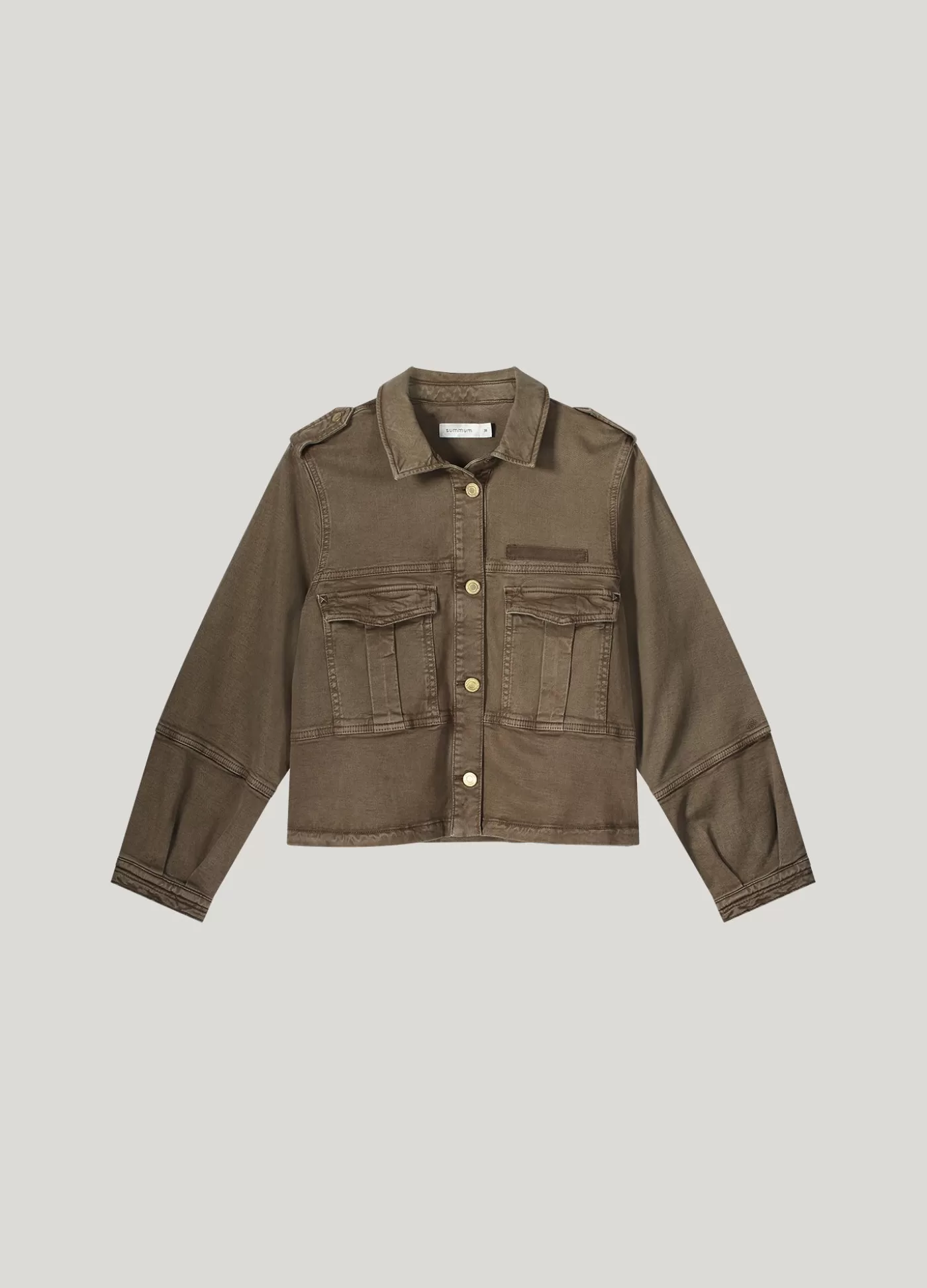 Stoer jasje met een boxy fit en een army look. Gemaakt van stretch twill en voorzien van knoopsluiting. Op de schouders zijn epaulettes gestikt. De mouwen hebben een trendy ballon vorm. stretch twill klassieke army look opgestikte zakken rechte pasvorm
