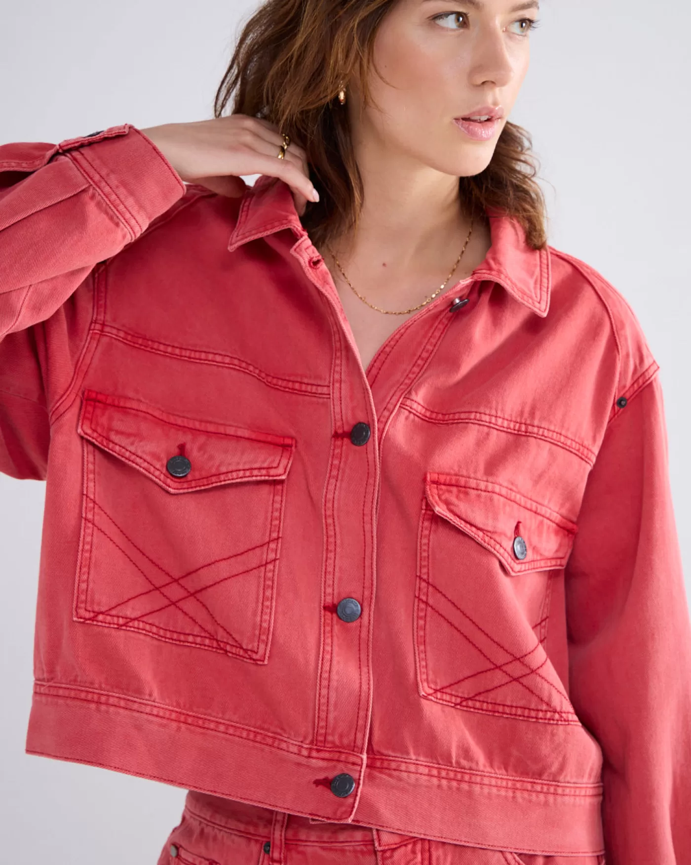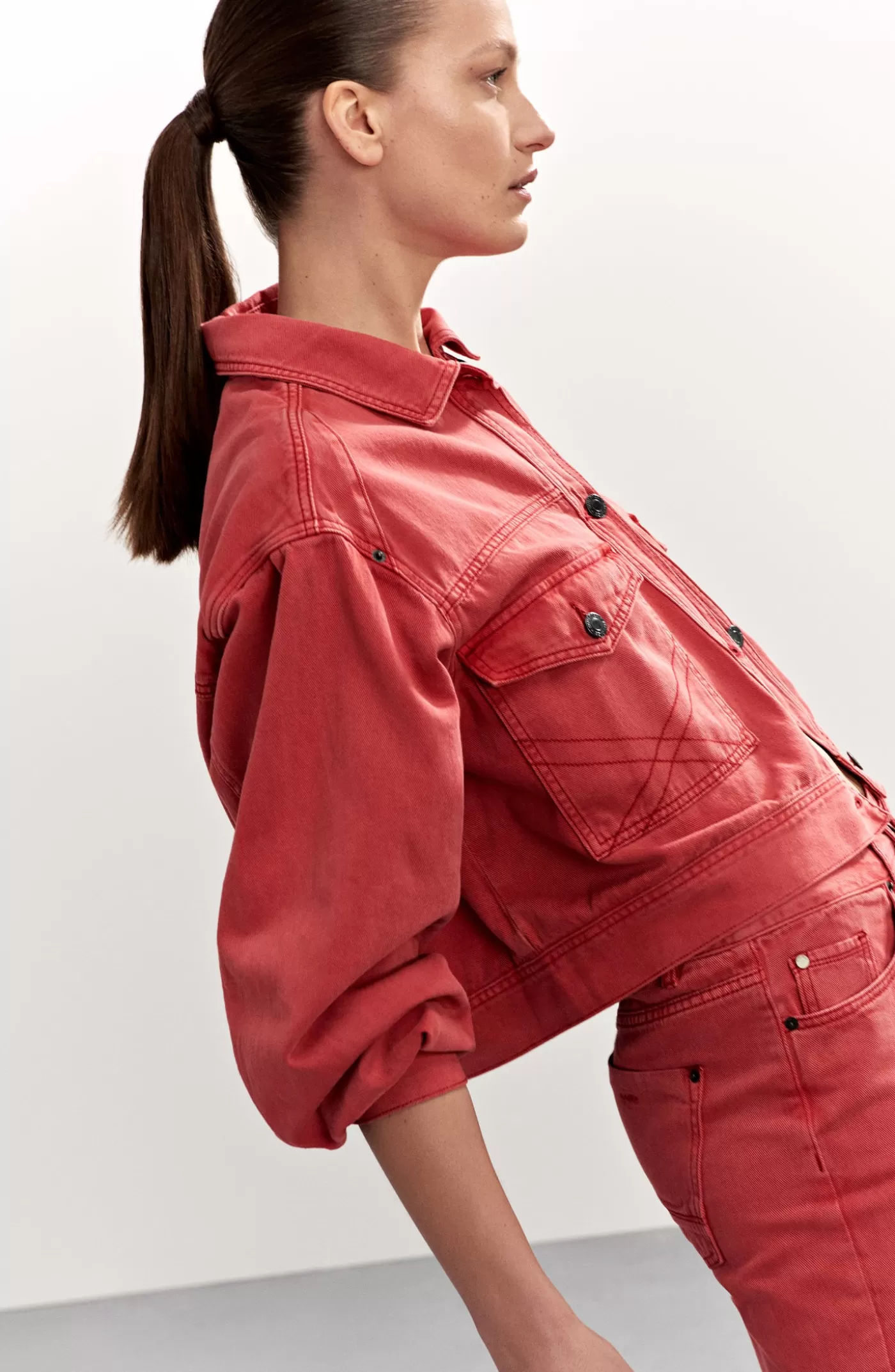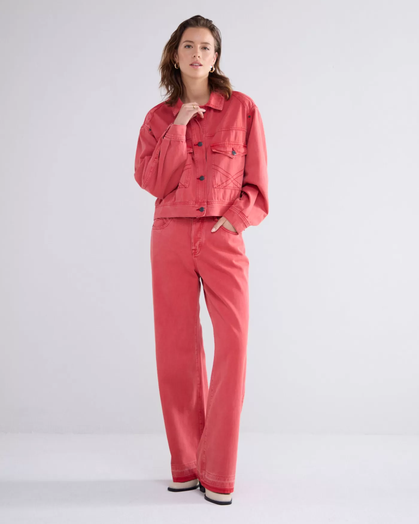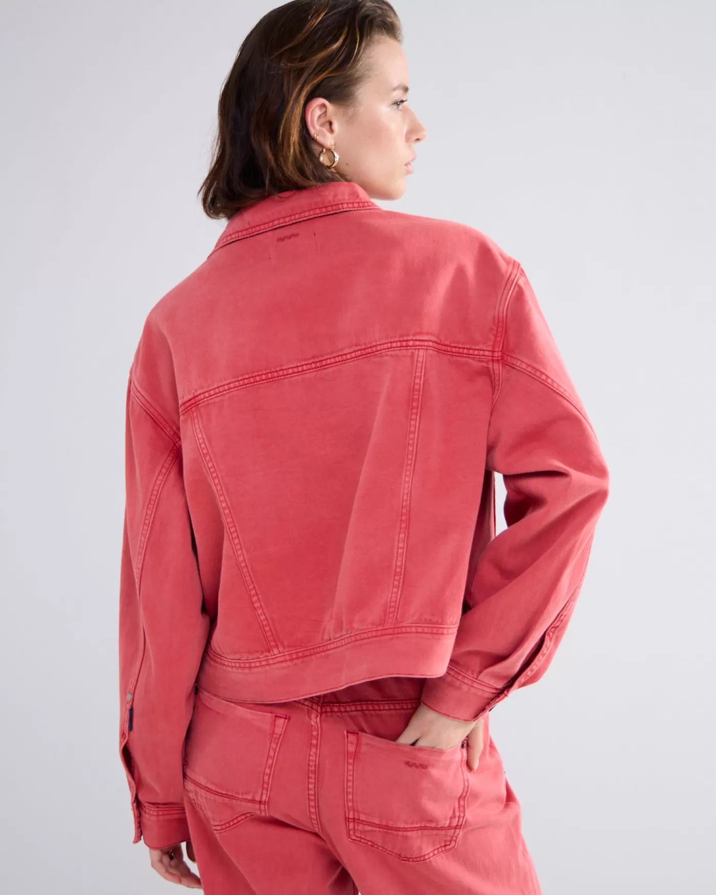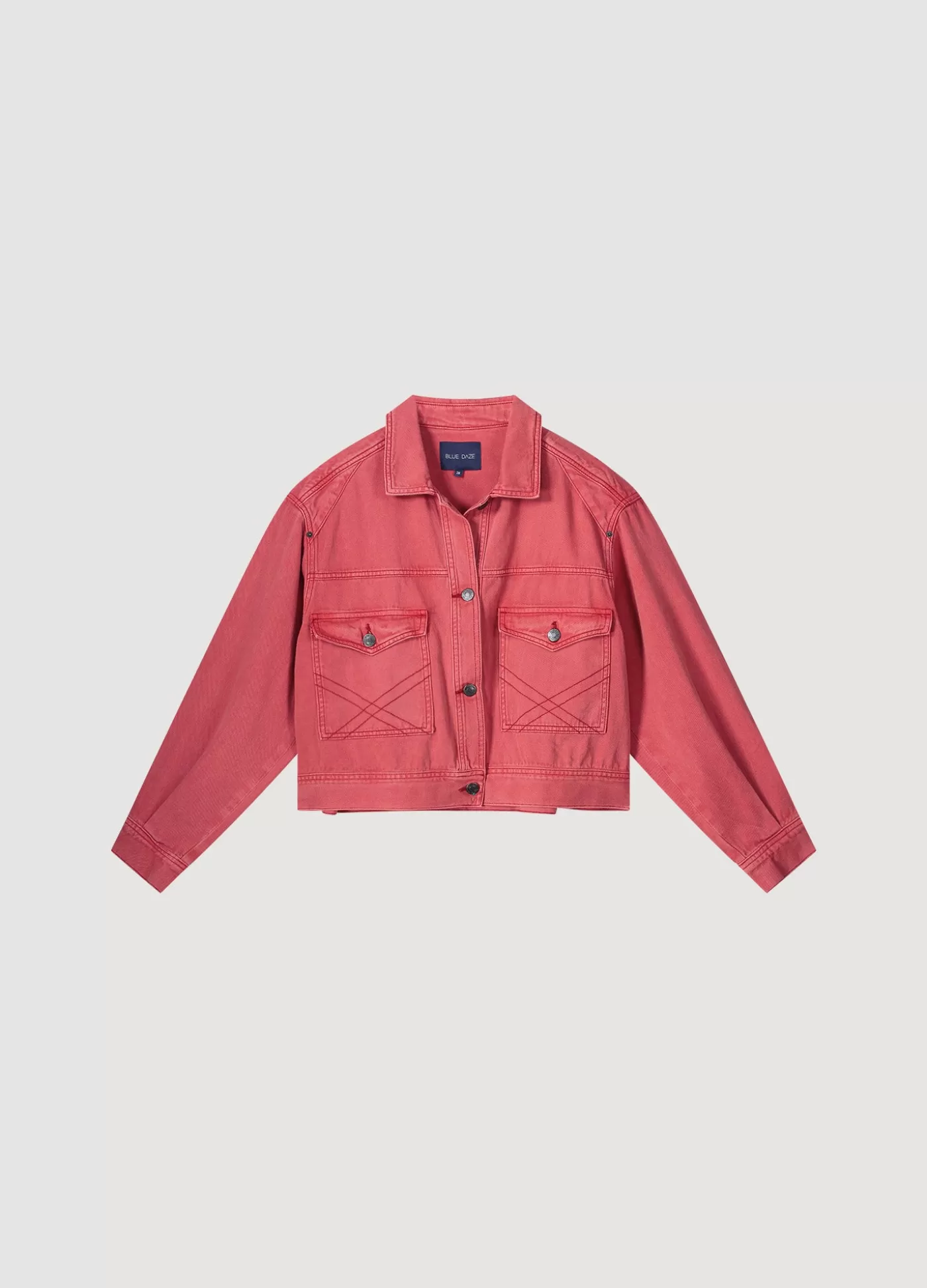 Boxy denim jacket van non-stretch gekleurd denim. De denim heeft een knoopsluiting. boxy fit non-stretch denim knoopsluiting gekleurd denim
