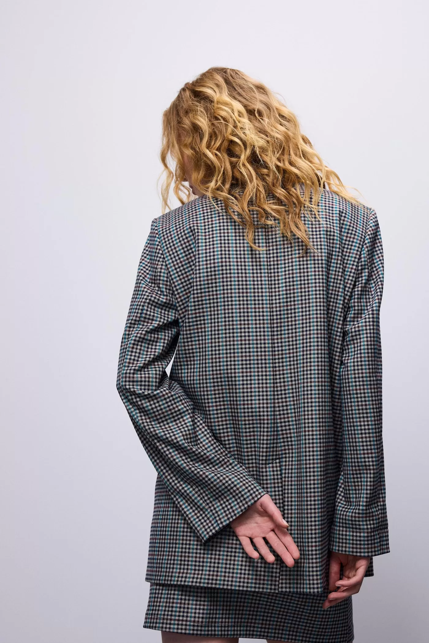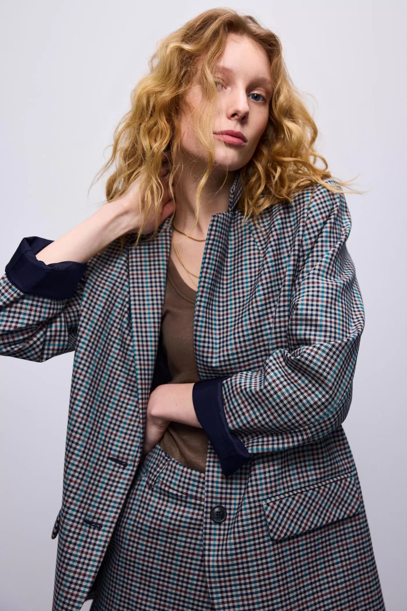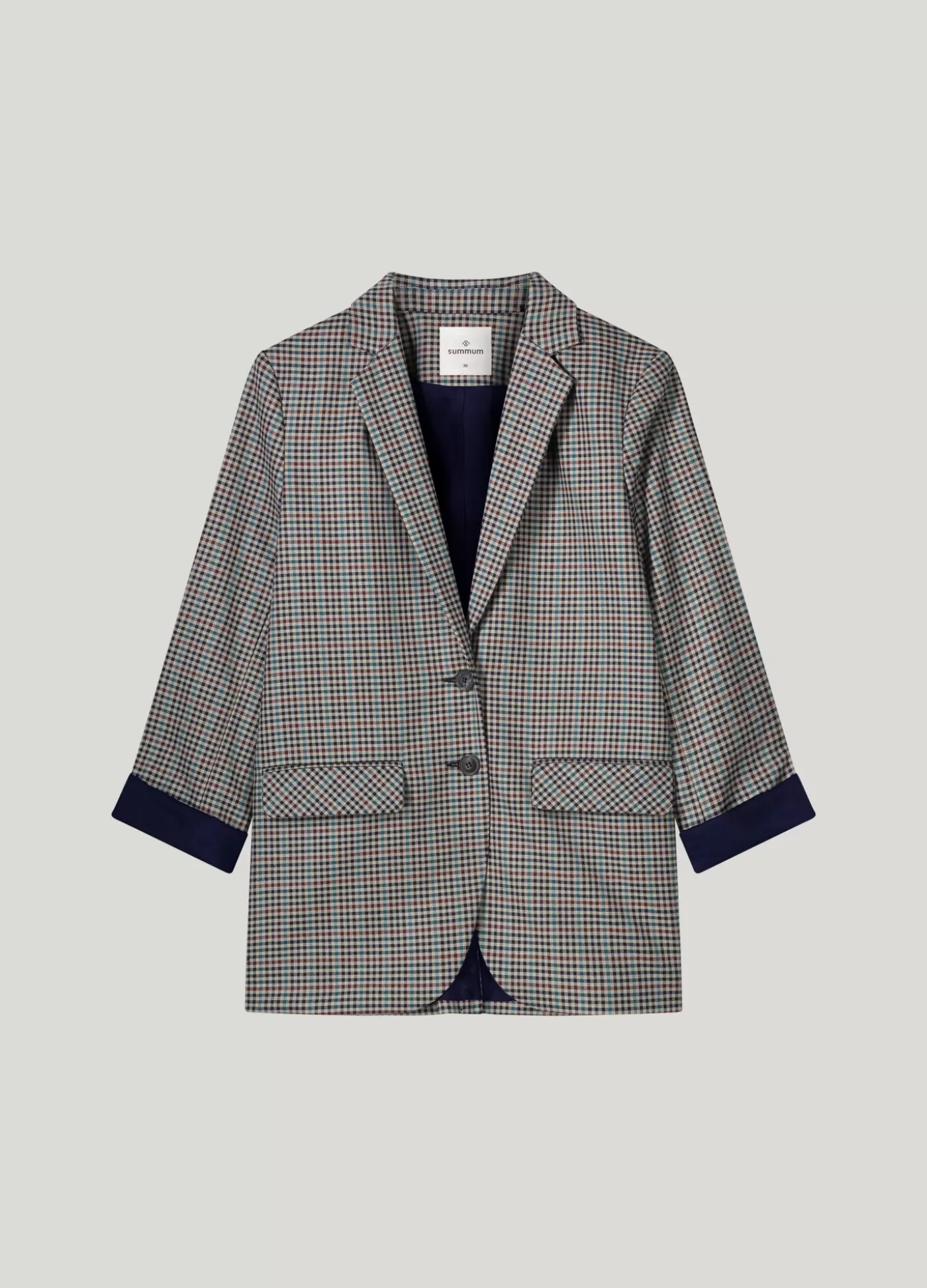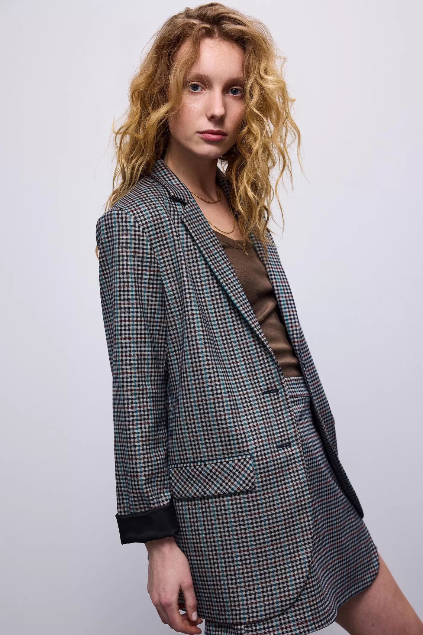 Boyfriend blazer in een multicolour ruitjespatroon met oprolbare mouwen. Het jasje heeft paspelzakken met klep op het voorpand. opgerolde mouwen paspelzakken met klep boyfriend fit multicolour ruitjes
