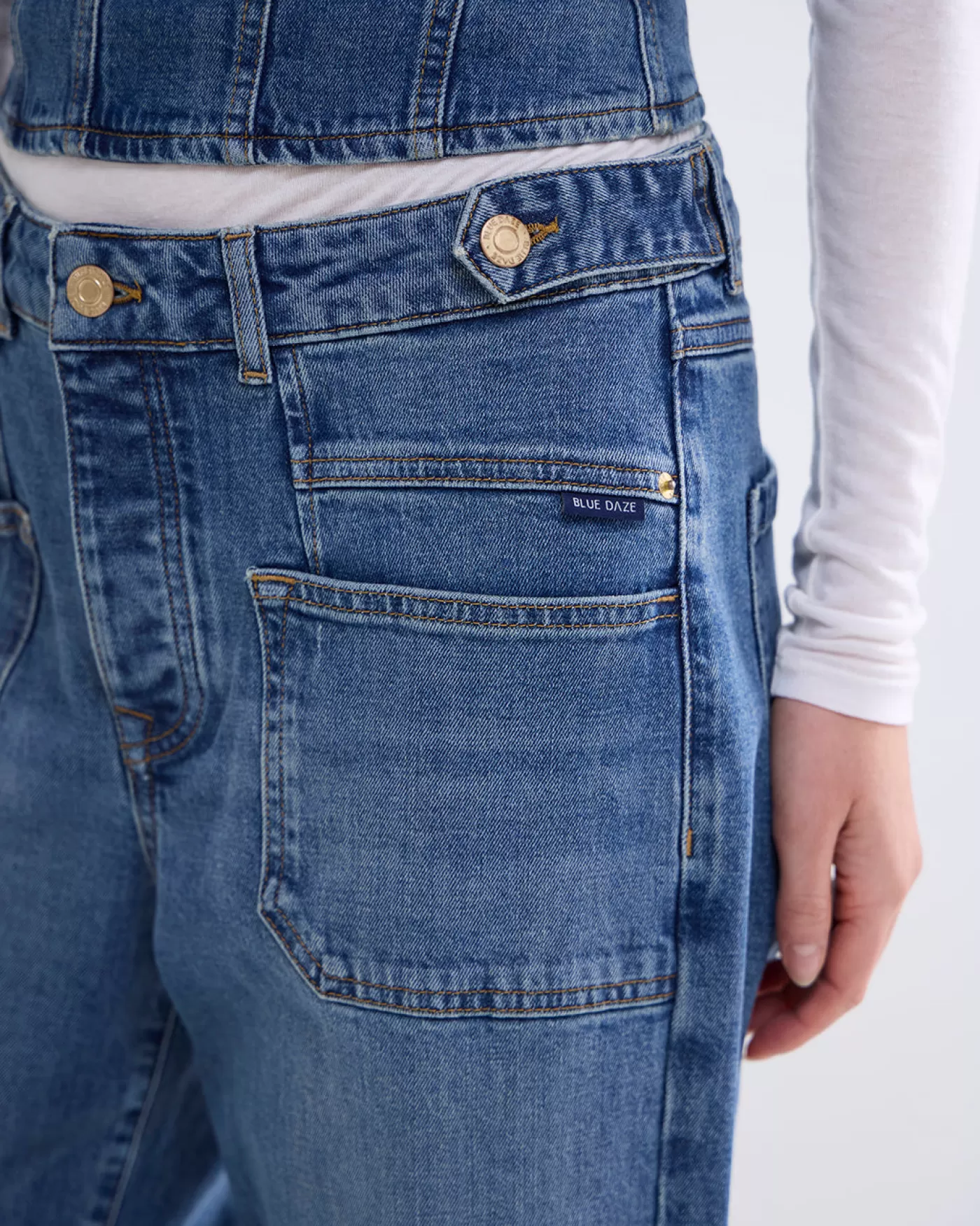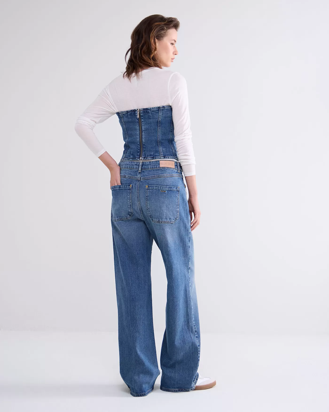 Jeans met wijde pijpen van stretchdenim met workwear-zakken. De broek heeft een mid-rise waist en sluit goed aan op de heupen. workwear wijde broekspijpen mid-rise waist stretch