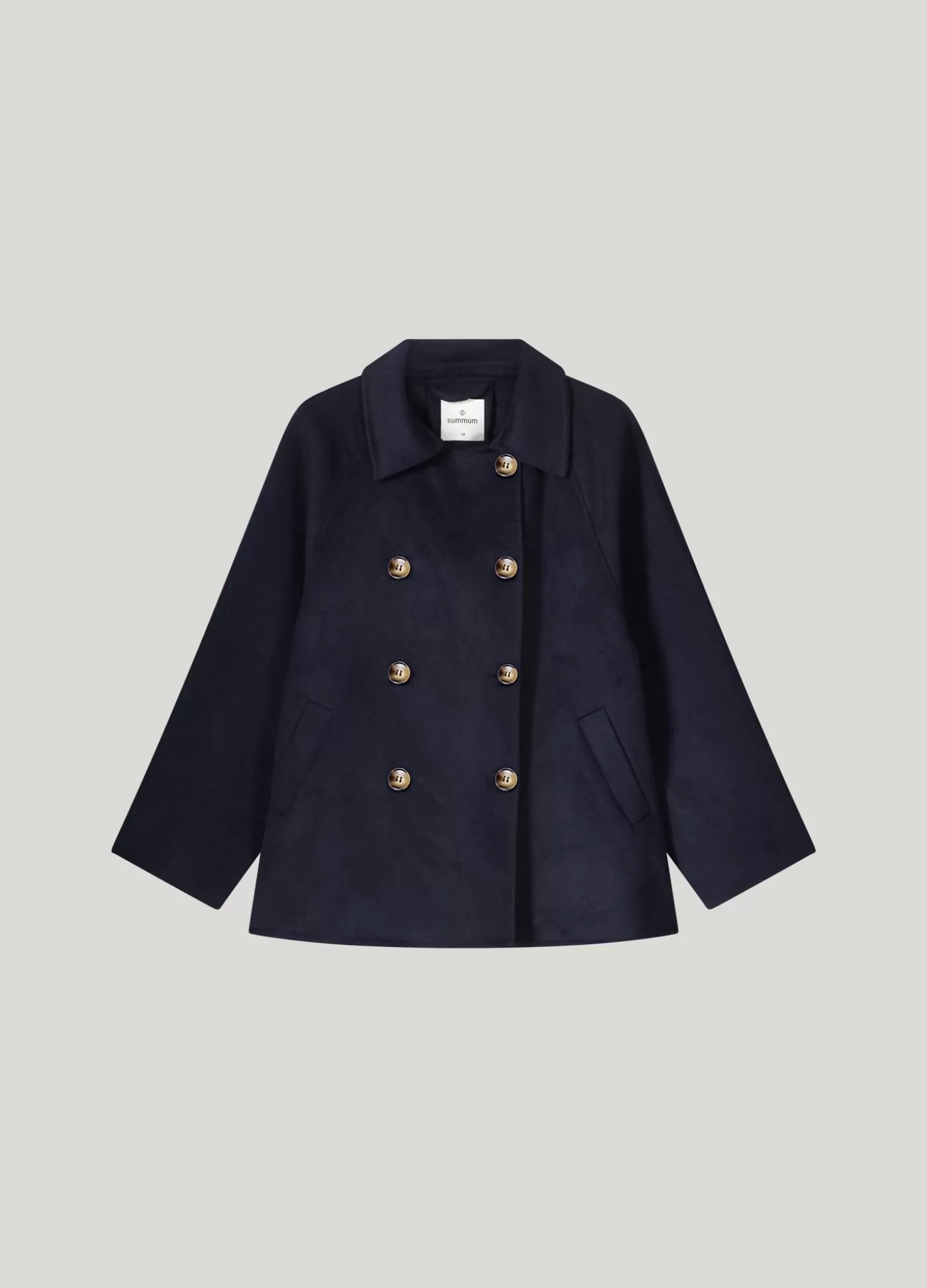 Kort jasje met een klassieke look in een ruime fit en gemaakt van een luxe wollen mix geweven stof. Het jasje heeft een dubbele rij knopen en strookzakken op het voorpand. luxe wollen mix dubbele rij knopen zakken op voorpand kort model
