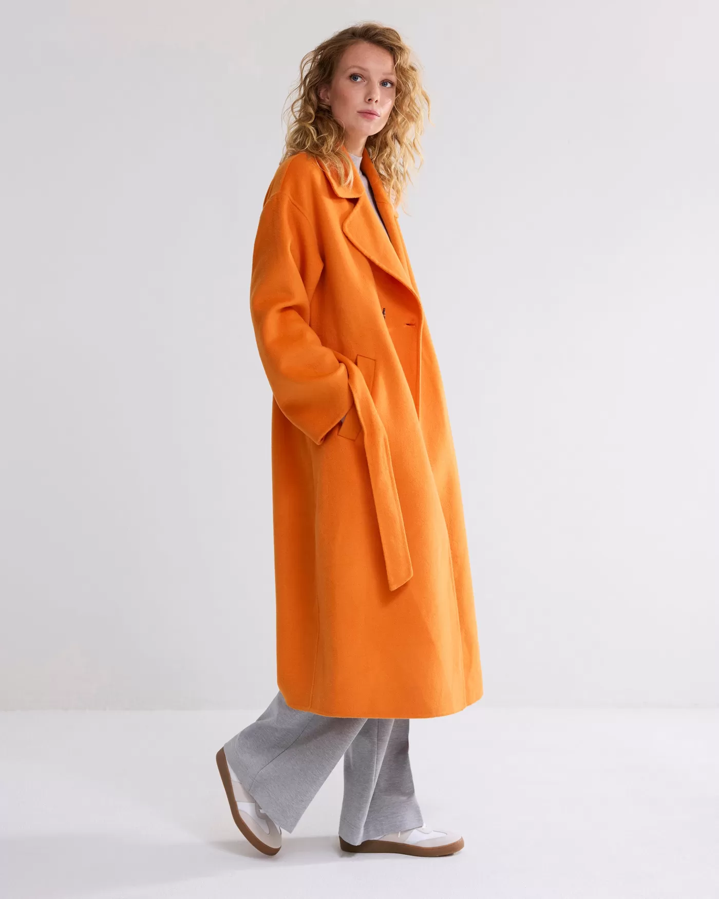 Lange jas met klassieke uitstraling in een rechte snit, gemaakt van een luxe wollen mix geweven stof. De jas heeft een knoopsluiting, bijpassende riem en strookzakken op het voorpand. luxe wollen mix knoopsluiting riem in de taille zakken op voorpand