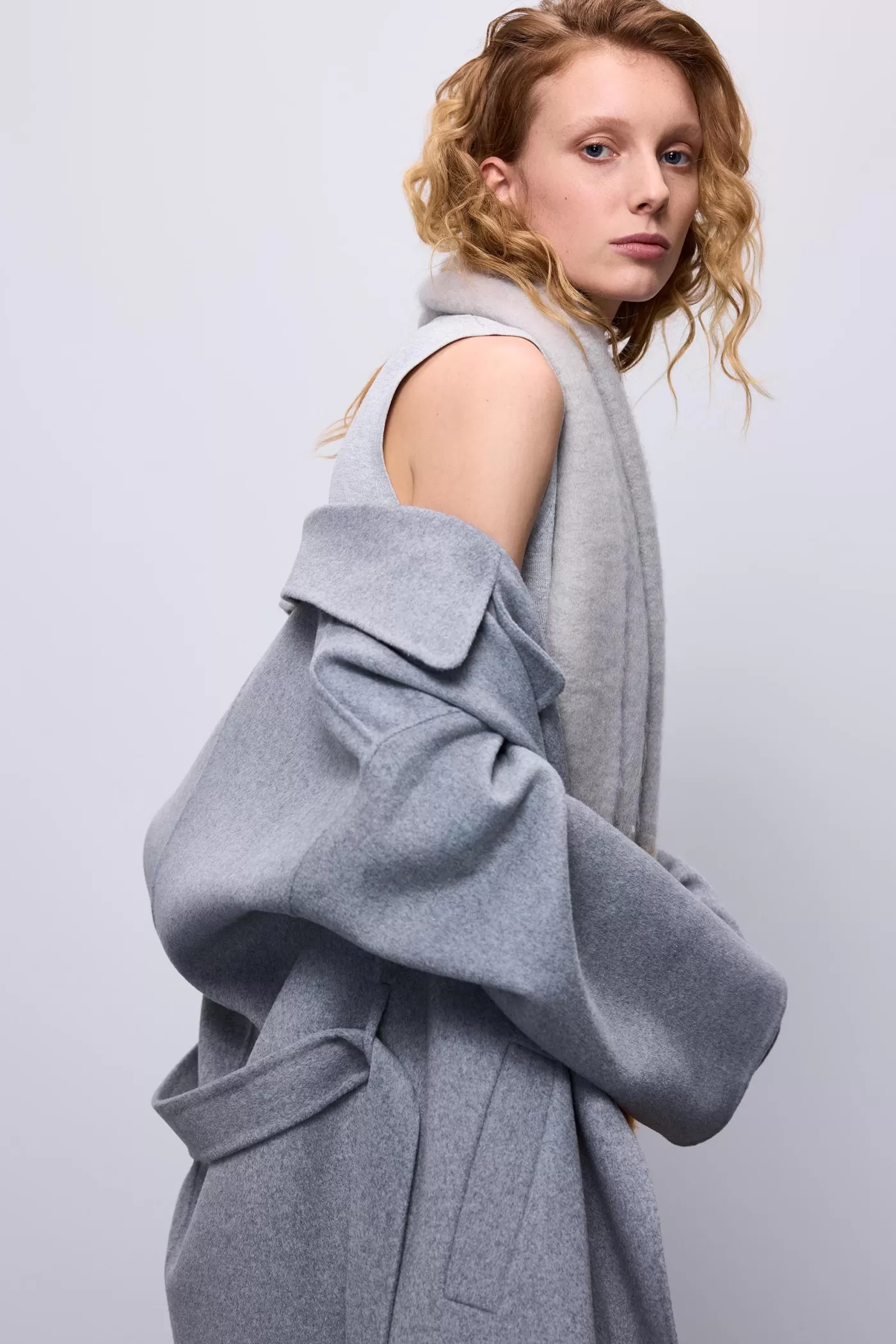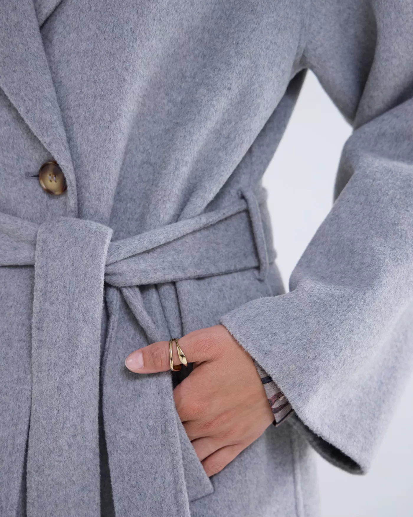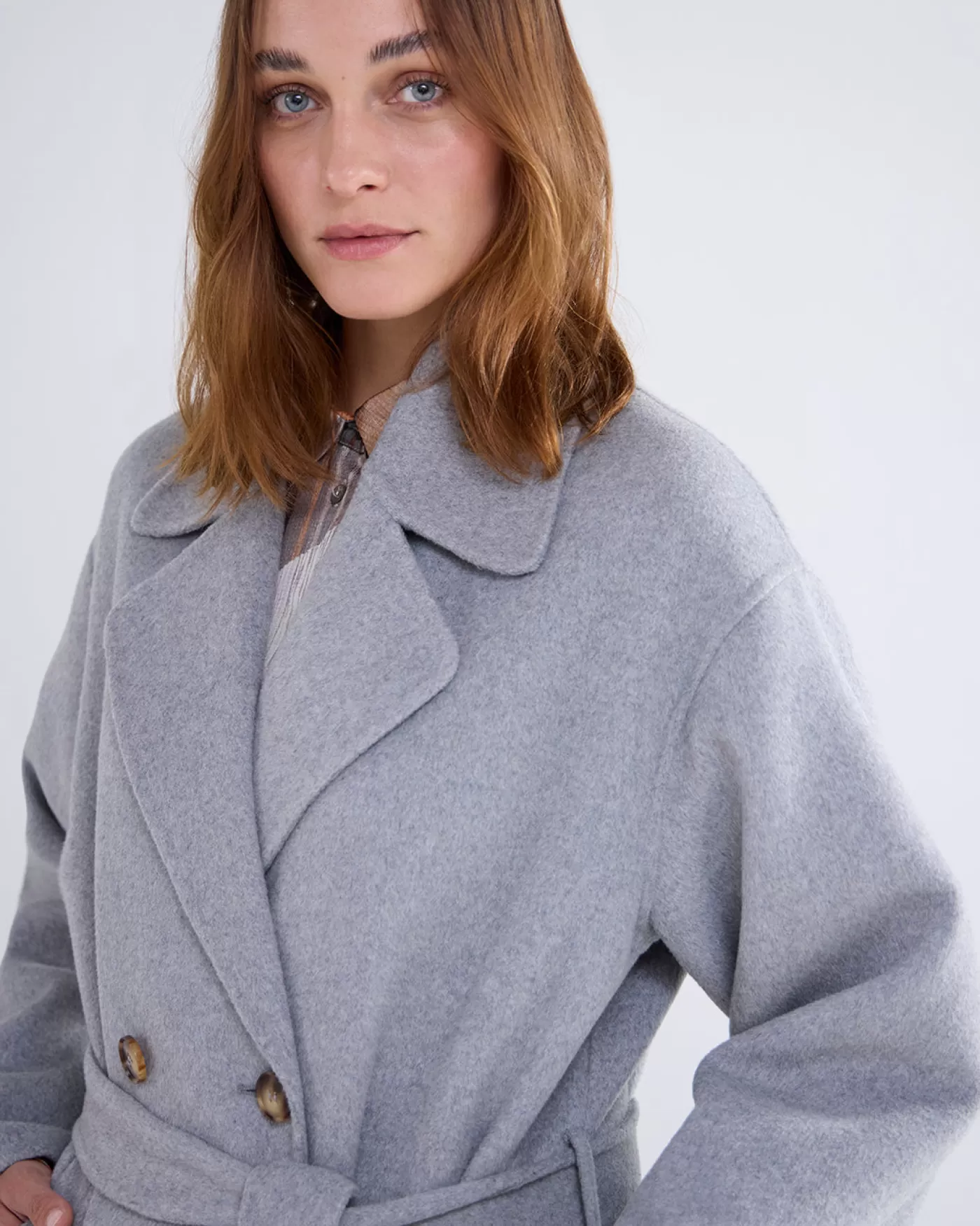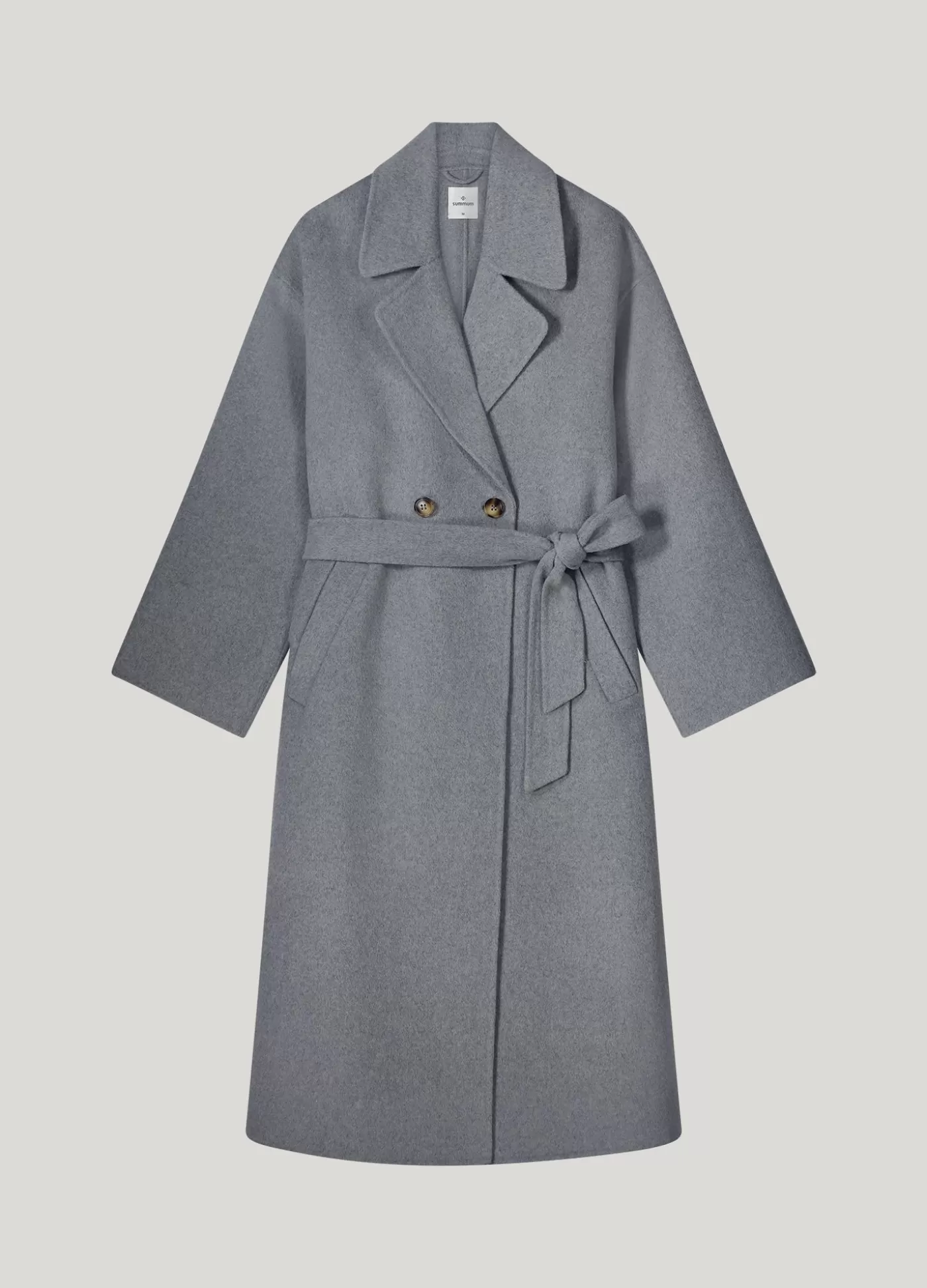 Lange jas met klassieke uitstraling in een rechte snit, gemaakt van een luxe wollen mix geweven stof. De jas heeft een knoopsluiting, bijpassende riem en strookzakken op het voorpand. luxe wollen mix knoopsluiting riem in de taille zakken op voorpand