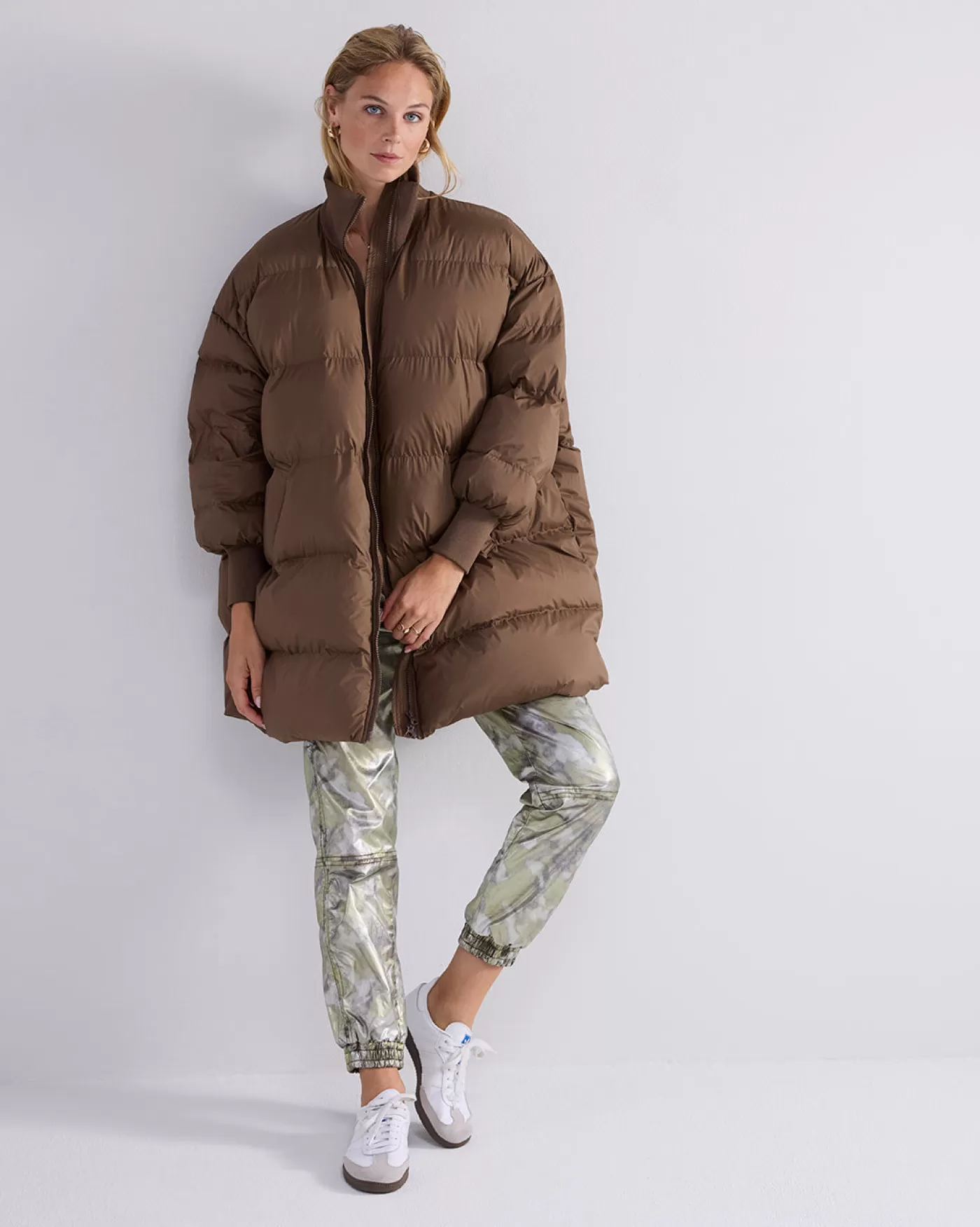 Gewatteerde jas met oversized pasvorm. De jas heeft breed geribde boorden en manchetten. Voorzien van een ritssluiting e…
