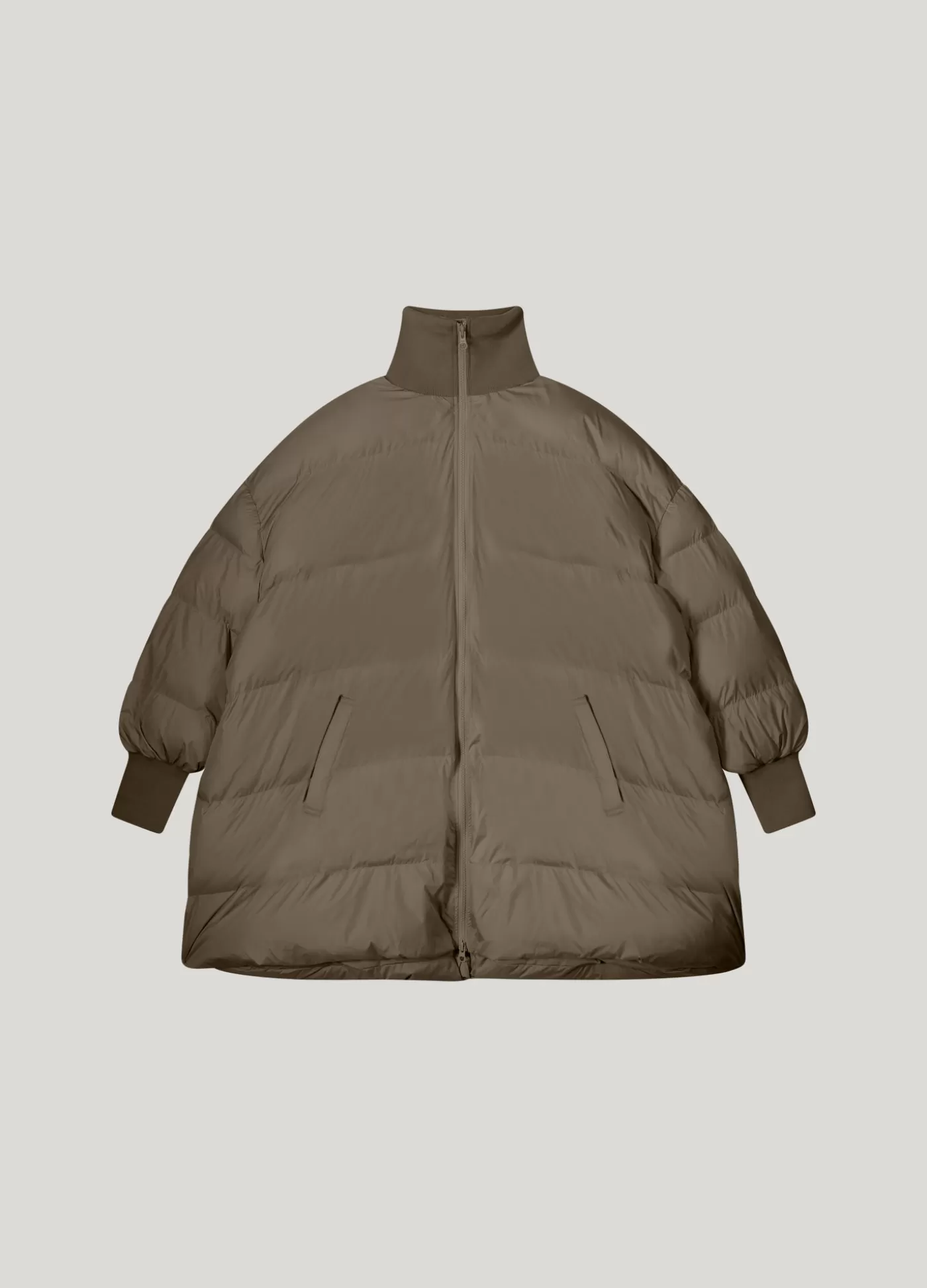 Gewatteerde jas met oversized pasvorm. De jas heeft breed geribde boorden en manchetten. Voorzien van een ritssluiting en zakken op het voorpand. oversized fit ribboord hals en manchetten ritssluiting zakken op voorpand