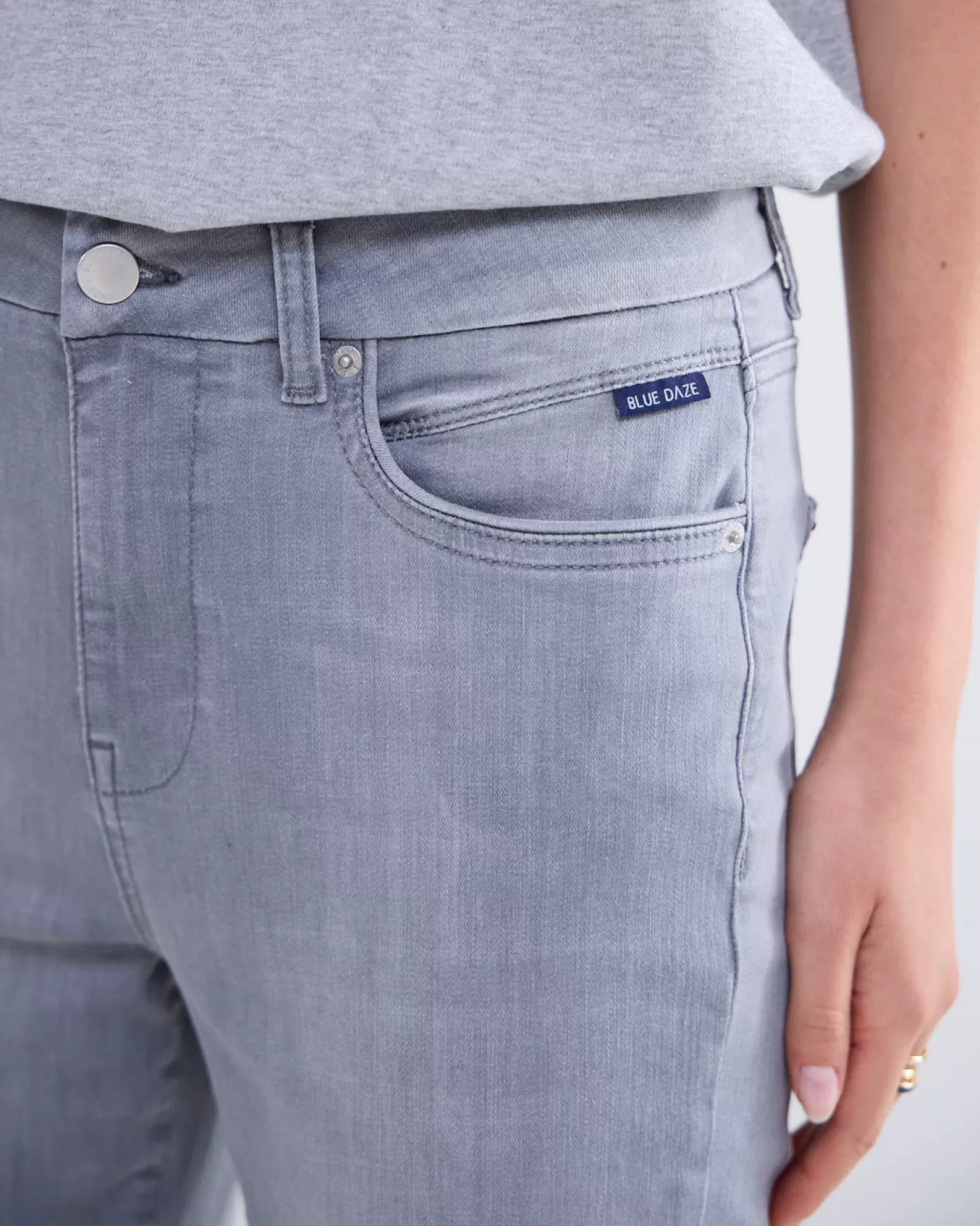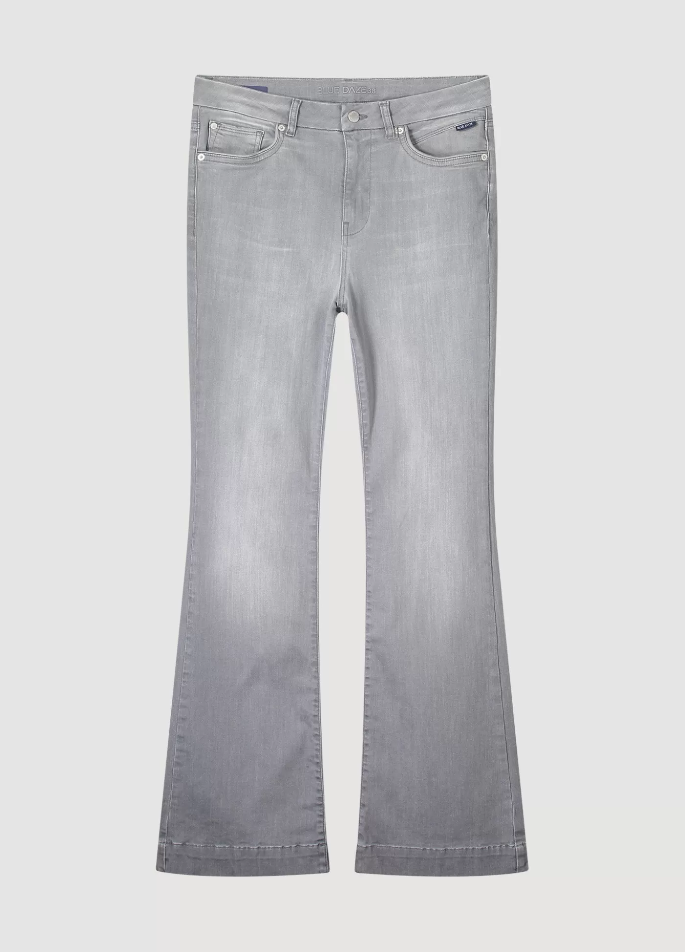 Skinny flared jeans met 5 zakken, gemaakt van grijze stretch denim. De jeans heeft een gulp met rits. skinny fit stretch denim grijze denim gulp met rits