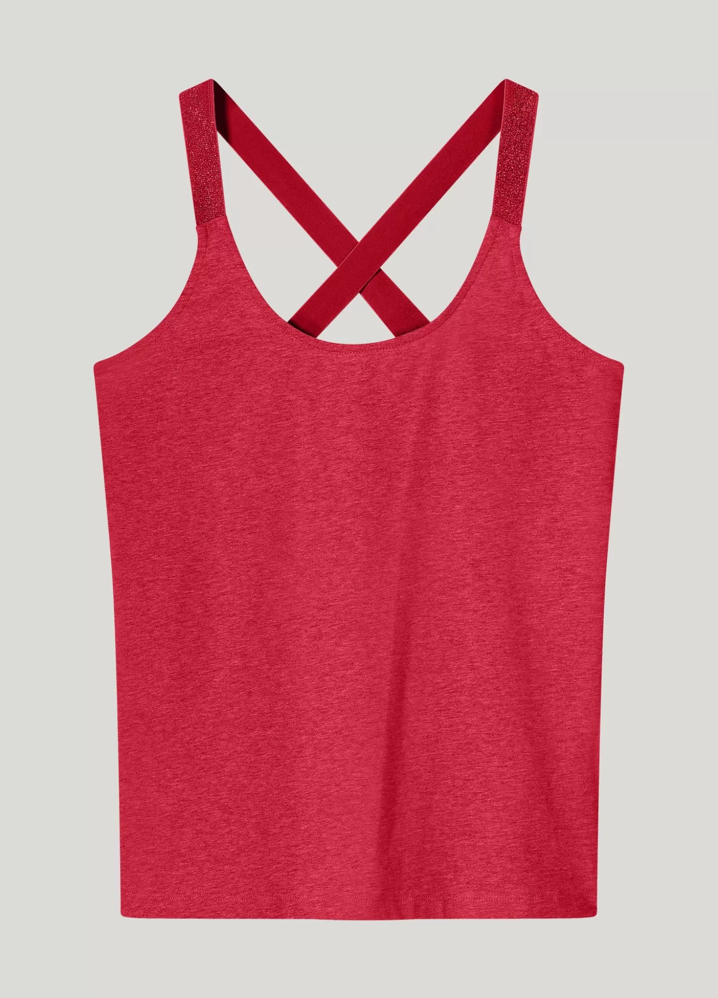 Basis singlet met kruisband op de rug, gemaakt van katoen elastaan tricot stof. De top heeft een nauwsluitende pasvorm e…