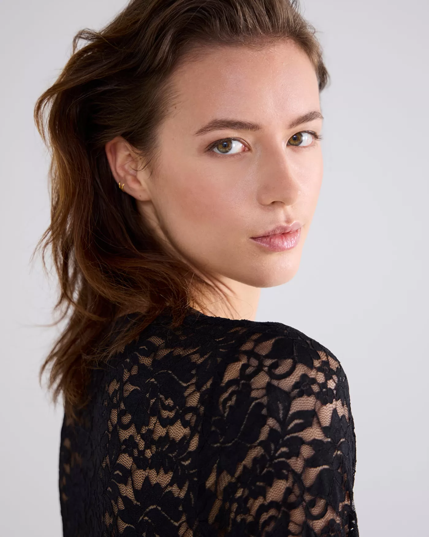 Top met lange mouwen, gemaakt van rekbare kanten jersey. Deze top is gevoerd en heeft een aangesloten pasvorm.ronde hals…