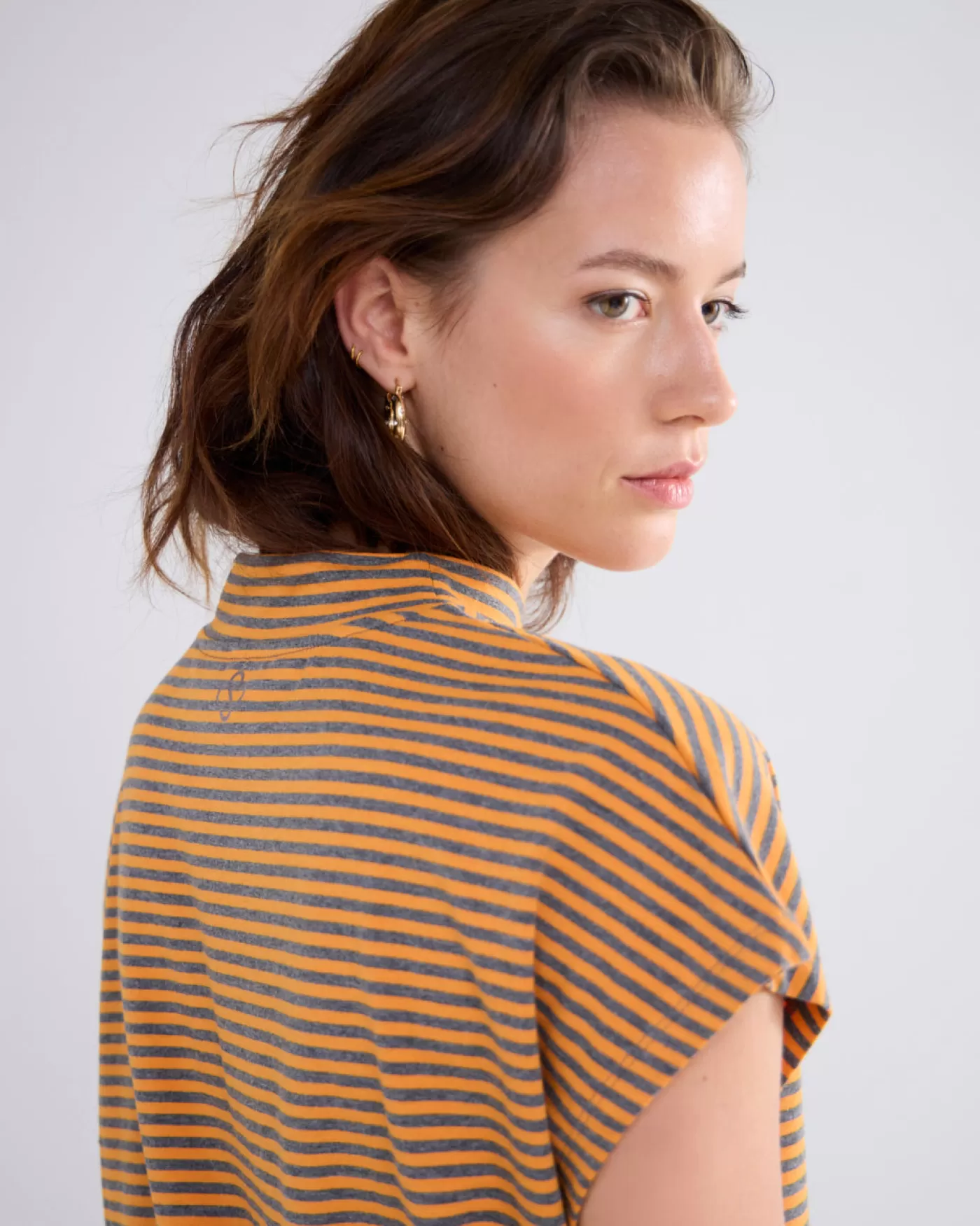 Top met een opstaande halslijn en aangeknipte korte mouwen. Uitgevoerd in een gestreepte jersey stof met een normale pas…