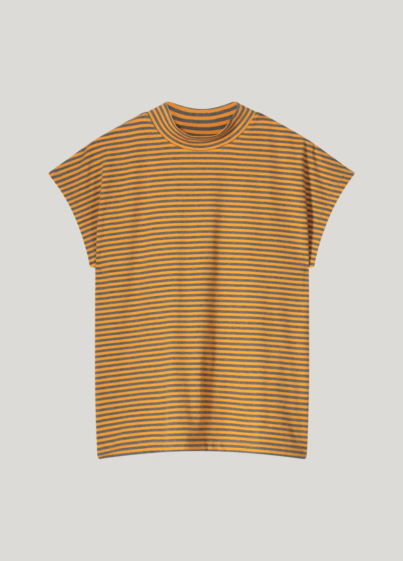 Top met een opstaande halslijn en aangeknipte korte mouwen. Uitgevoerd in een gestreepte jersey stof met een normale pasvorm. normale pasvorm opstaande halslijn aangeknipte korte mouwen gestreepte jersey