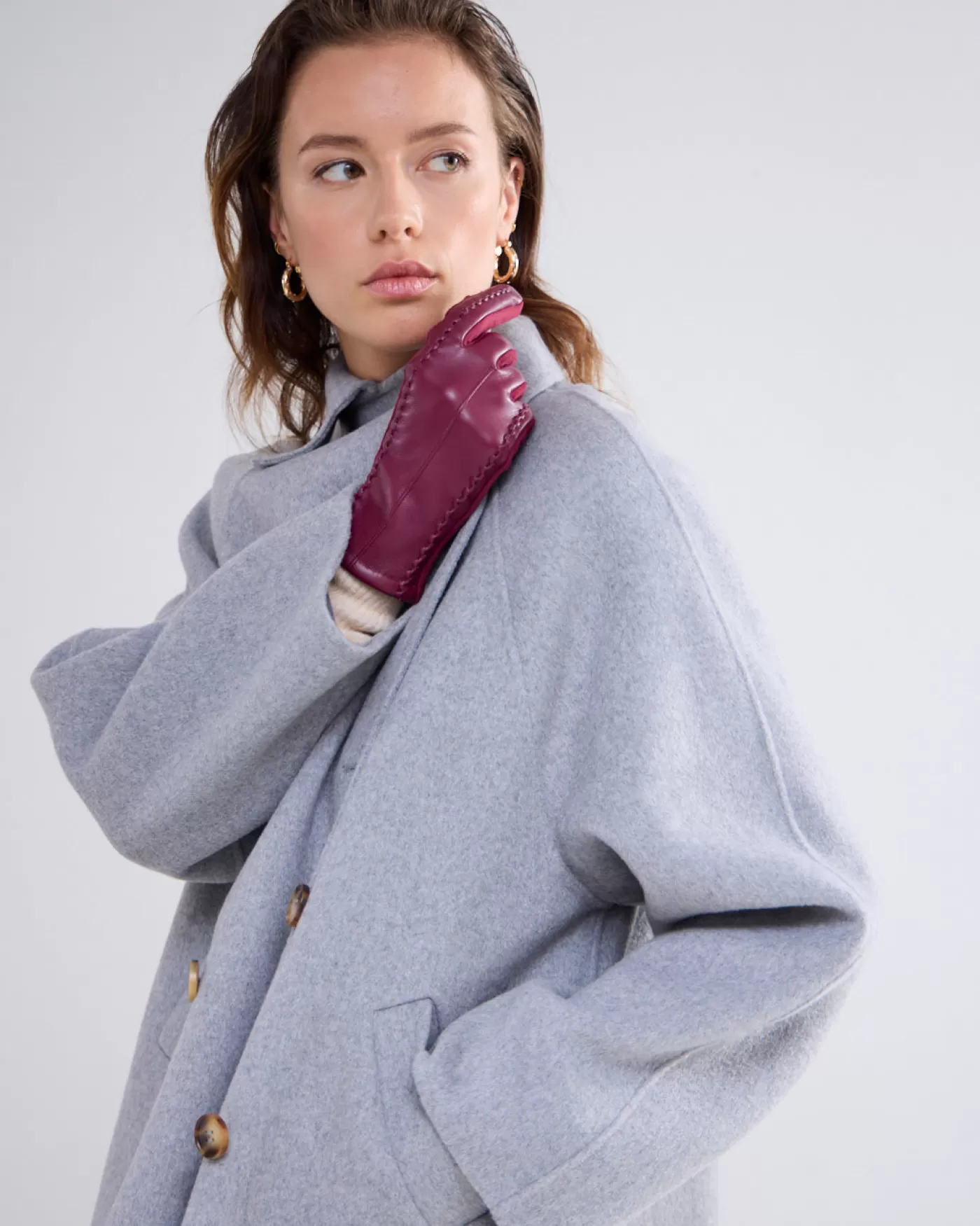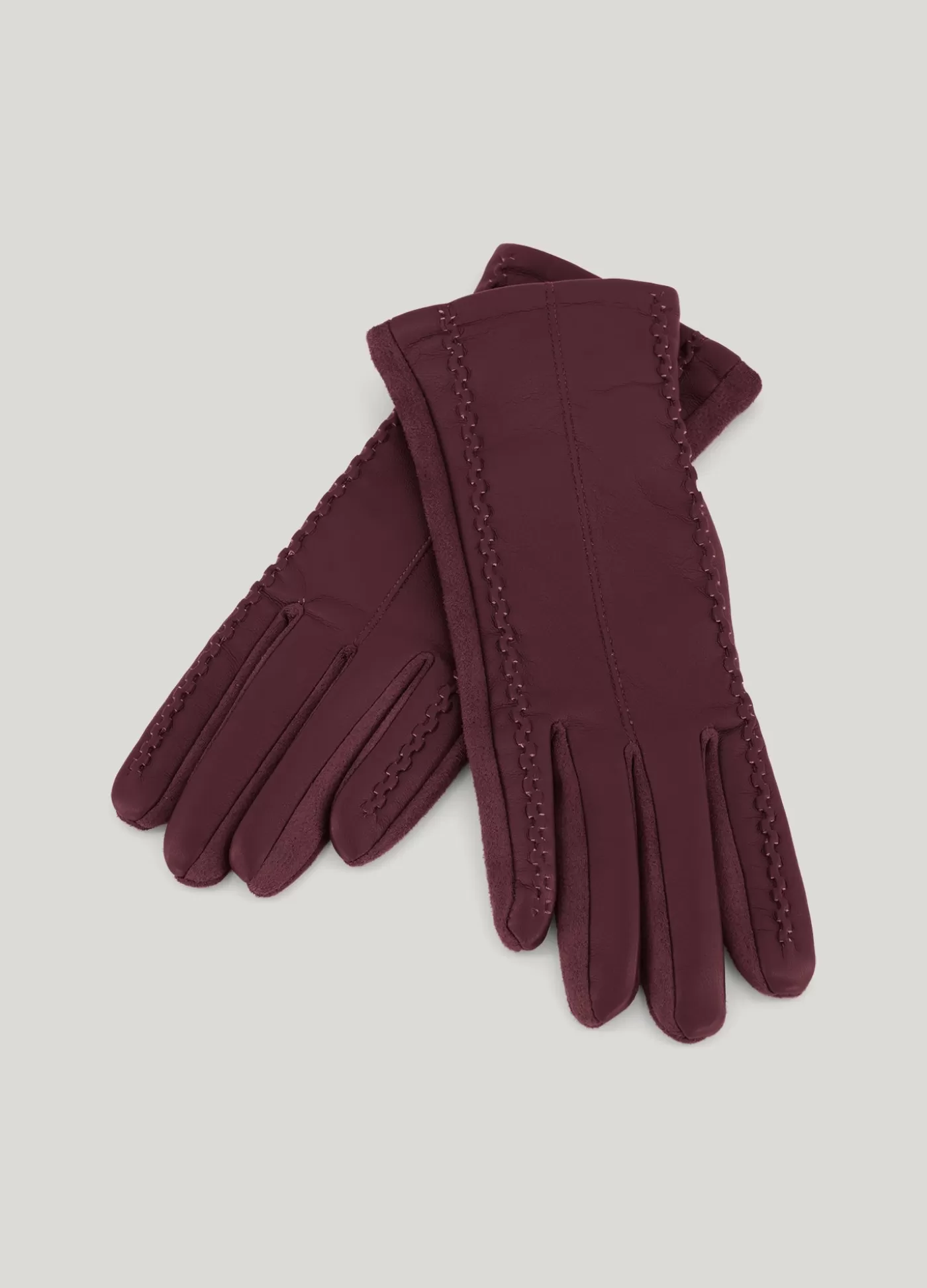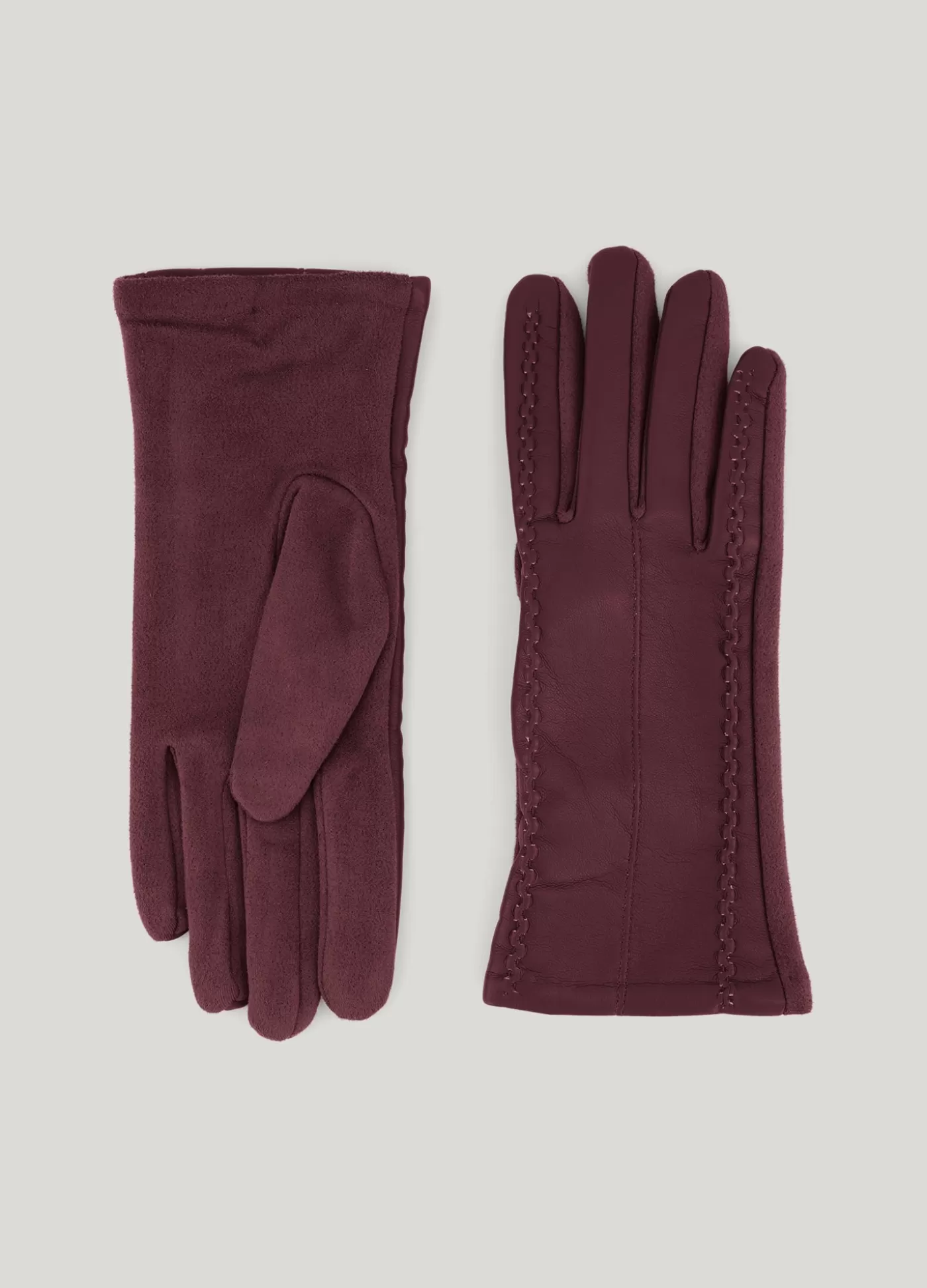 Zachte handschoenen van nep leer aan de bovenkant en suèdine aan de binnenkant. Gedecoreerd met sierstiksels. nep leer suèdine kwaliteit zachte stof
