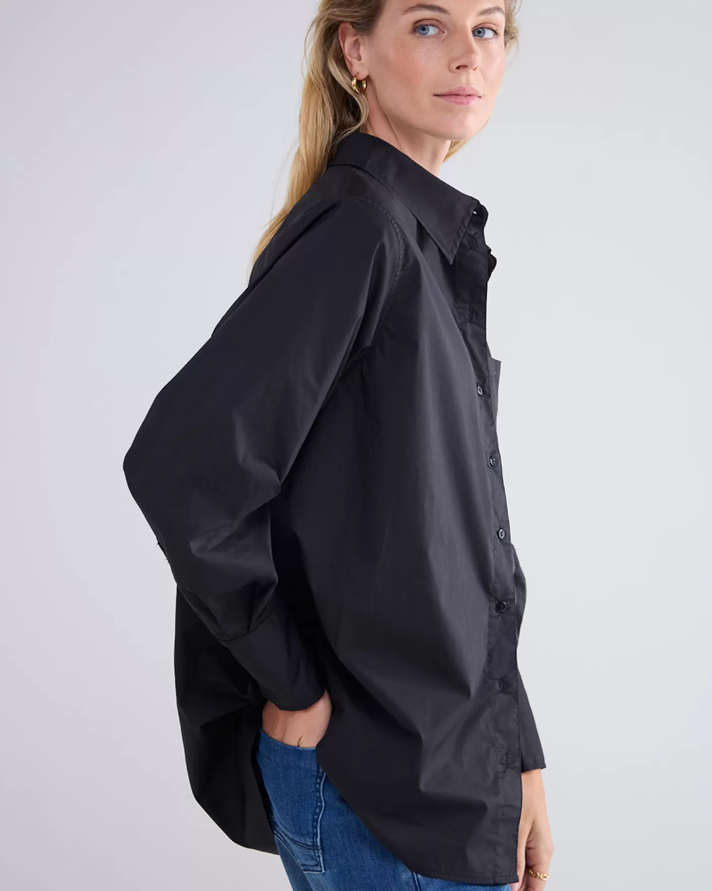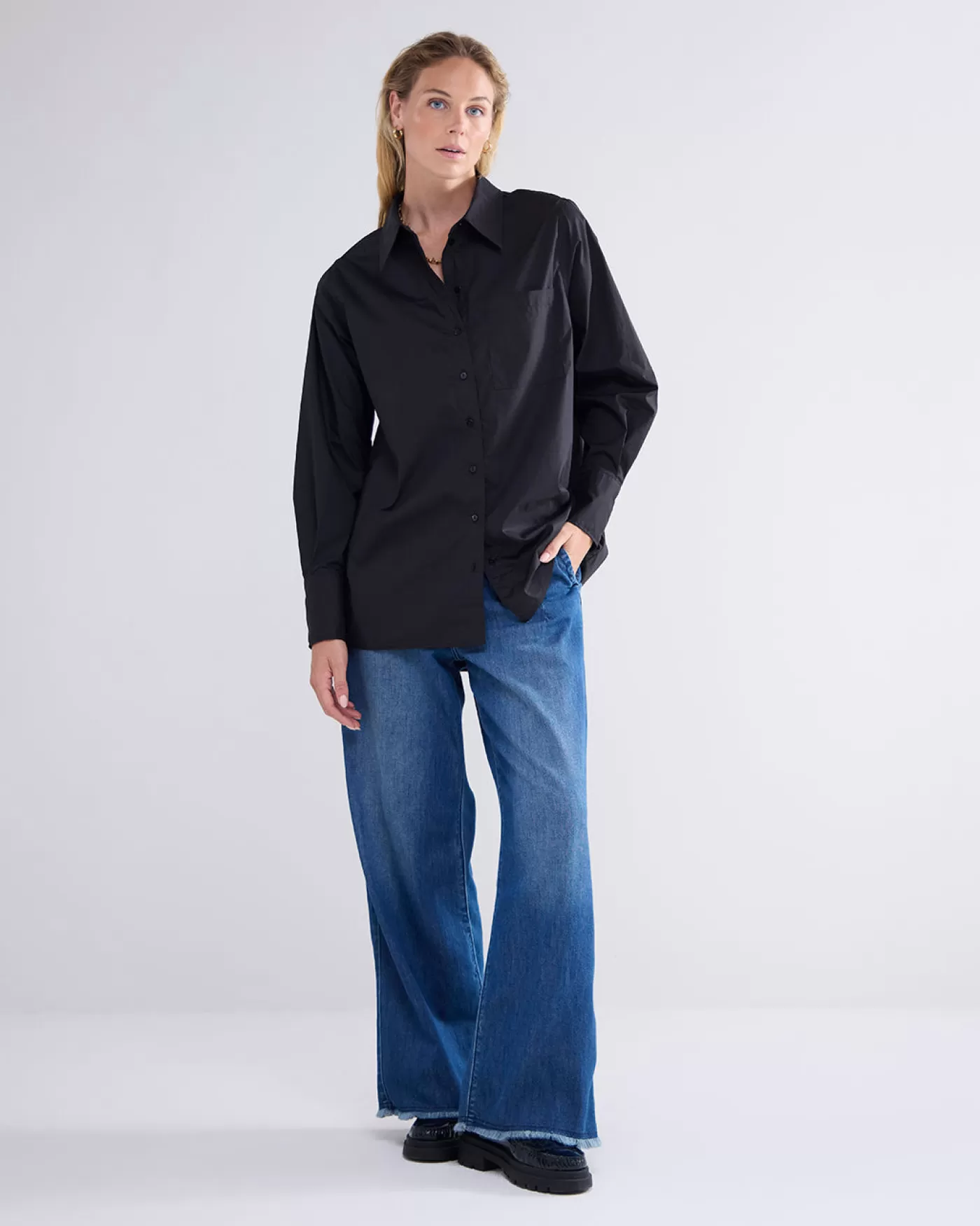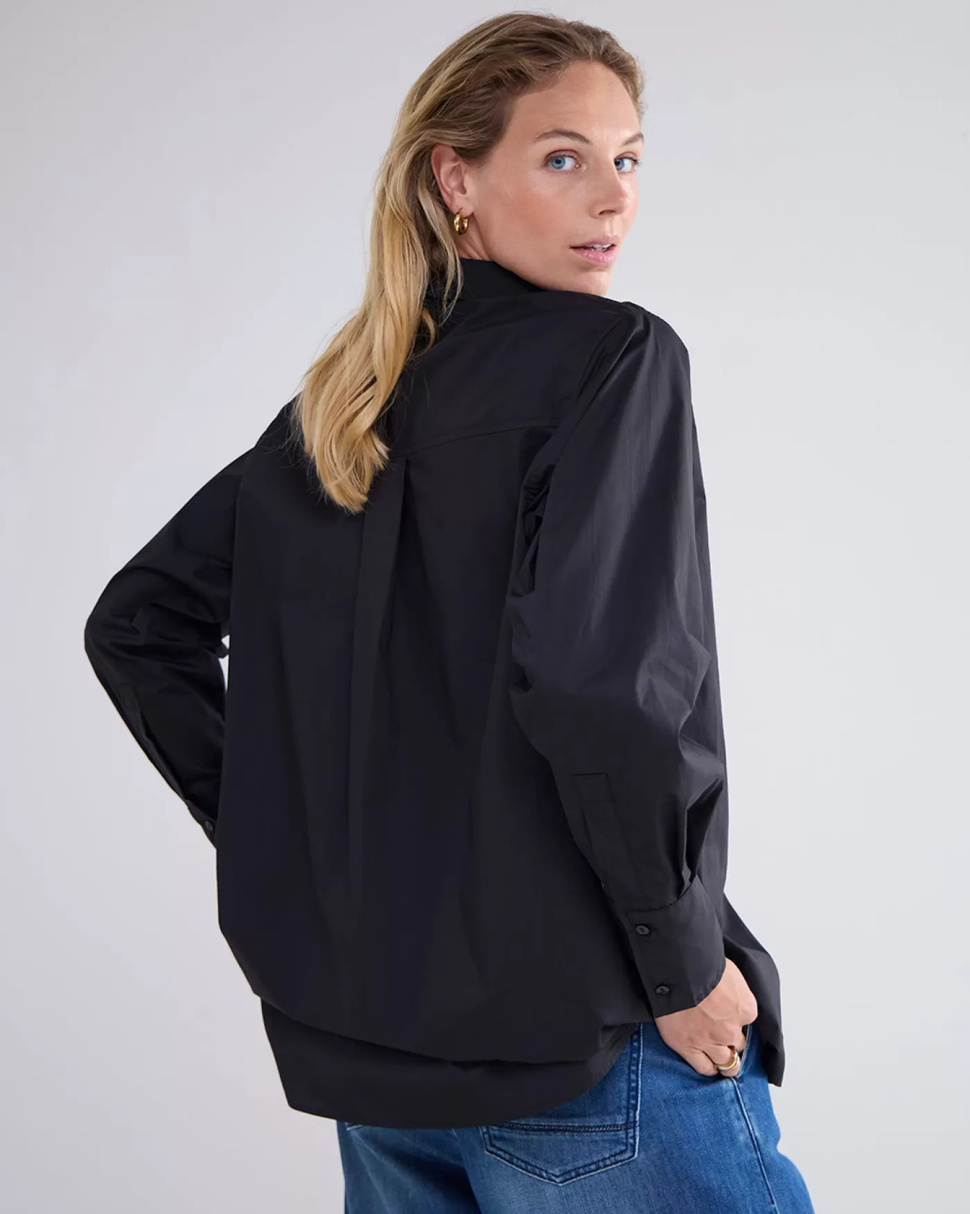 Klassieke blouse met lange mouwen en knoopsluiting aan de voorkant. De blouse is gemaakt van een katoenen geweven stof i…