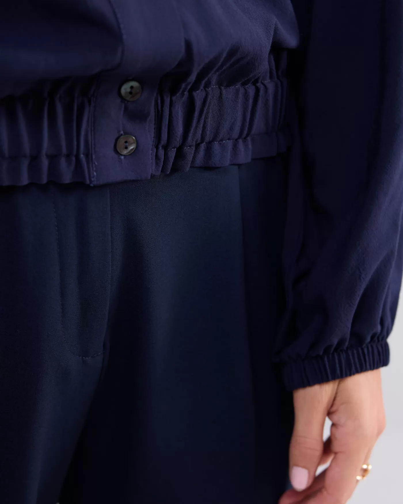 Blouse met elastische zoom, waardoor een bloezend bomber-effect ontstaat. De blouse heeft lange pofmouwen, knoopsluiting…