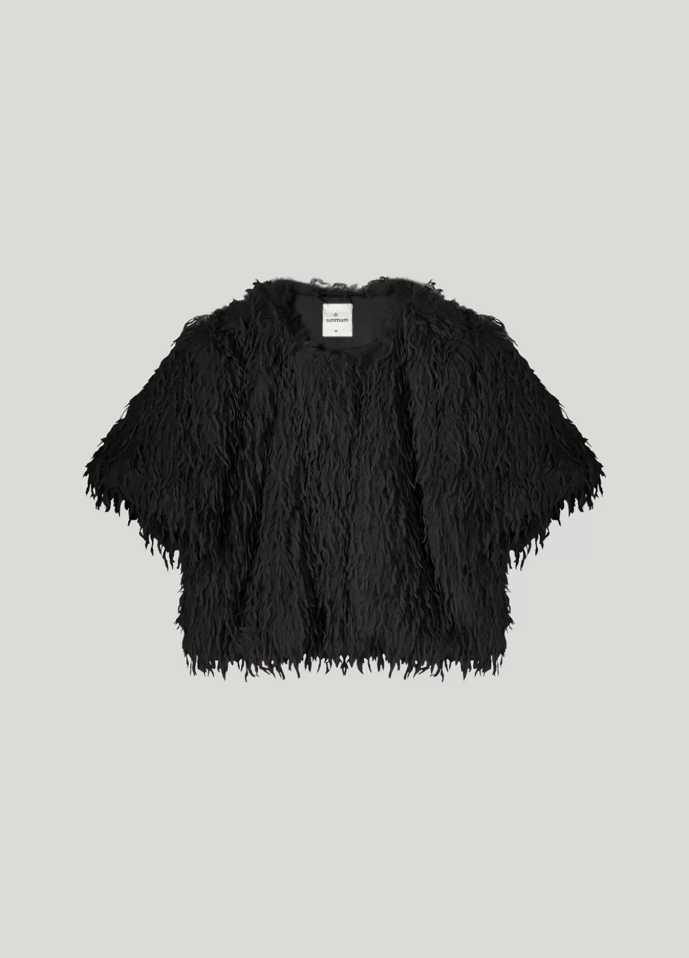 Jack met korte mouwen, is gevoerd en heeft ronde hals, uitgevoerd in een faux feather kwaliteit. Het jasje heeft een rui…