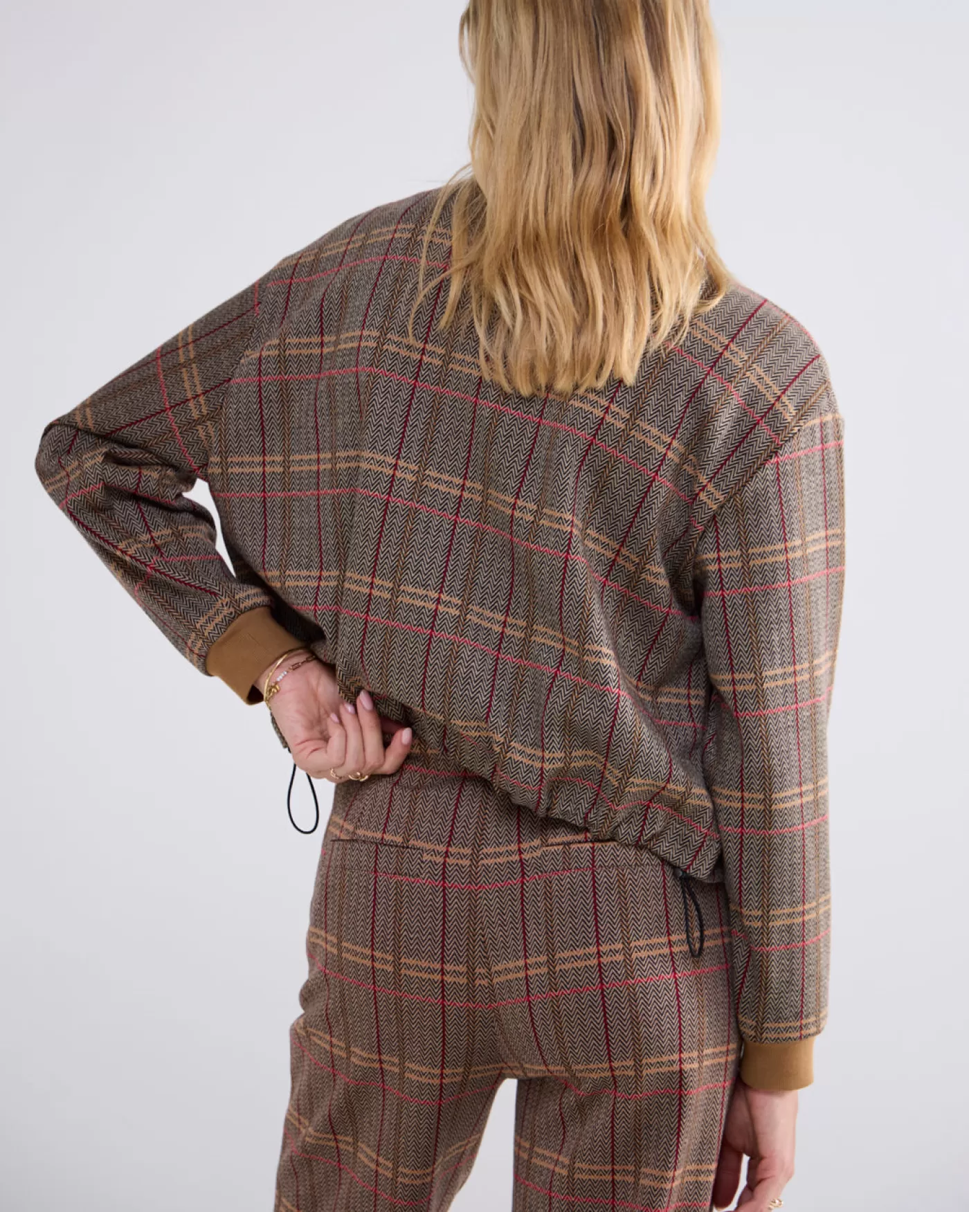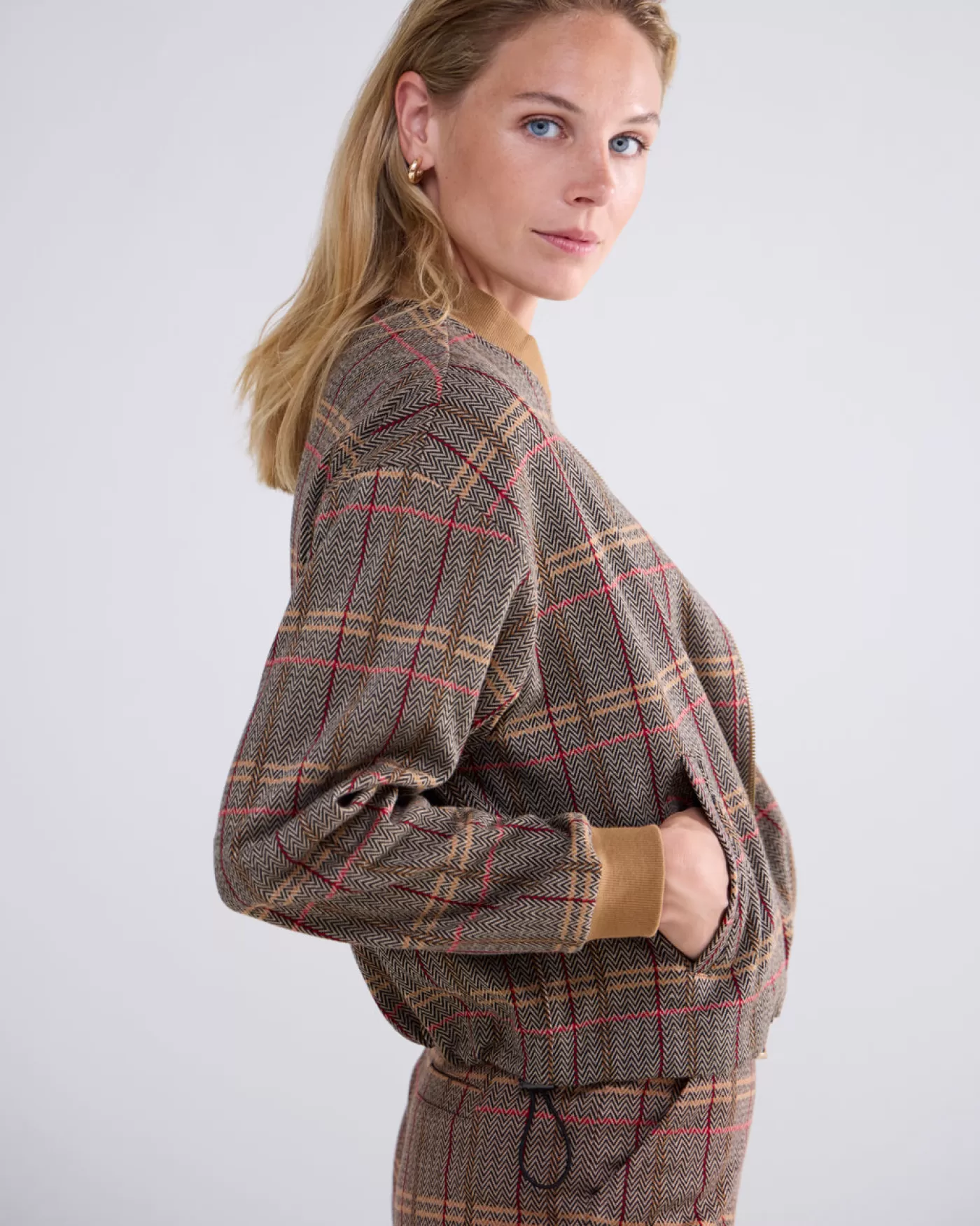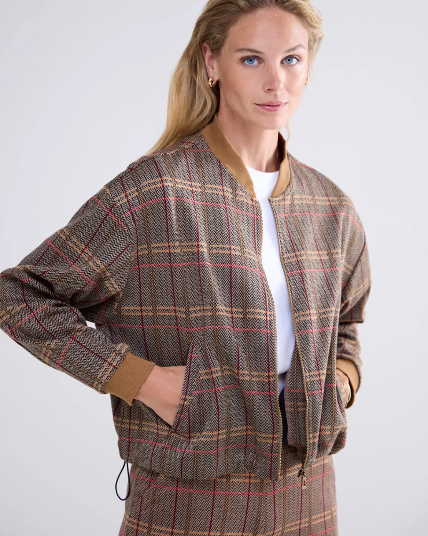 Bomberjack met lange mouwen en ritsluiting, gemaakt van comfortabele jacquard stof met ruitjesdessin. Voorzien van een e…