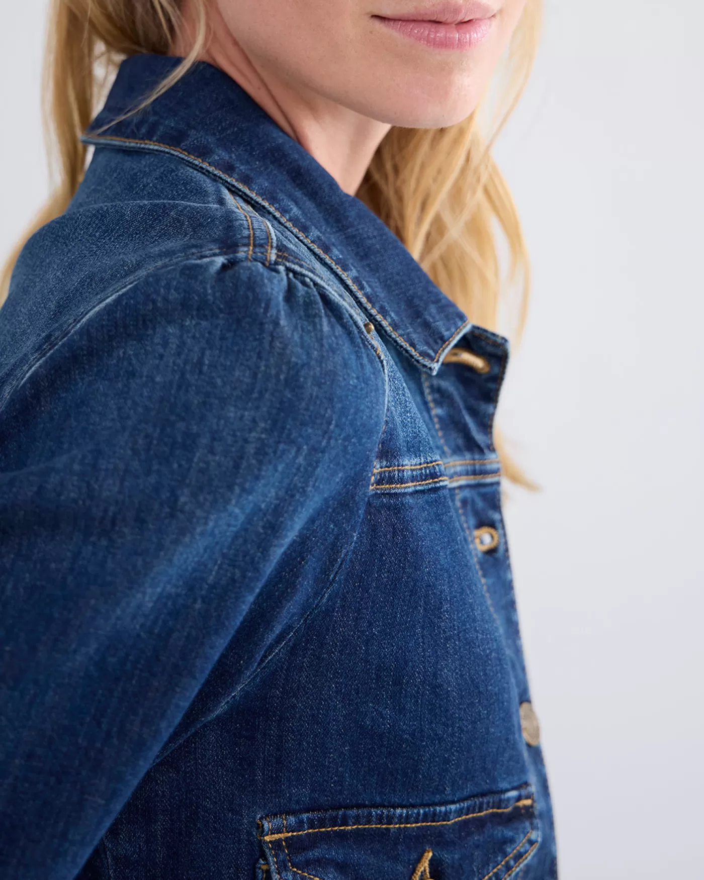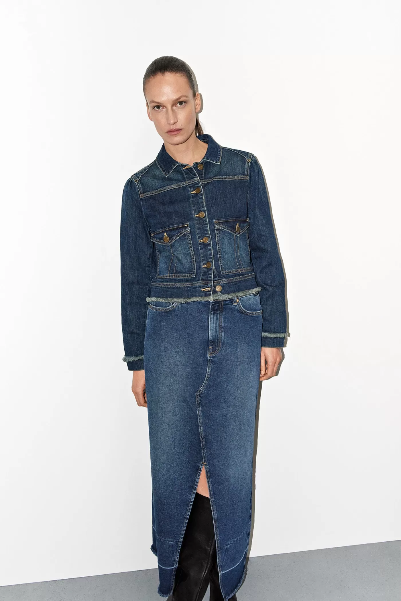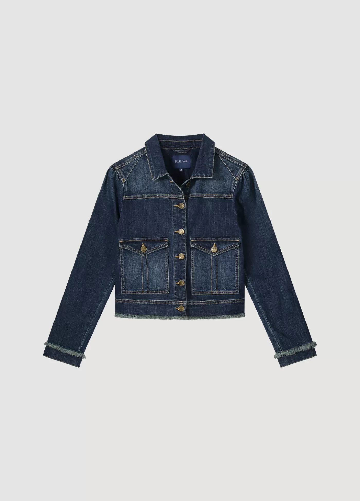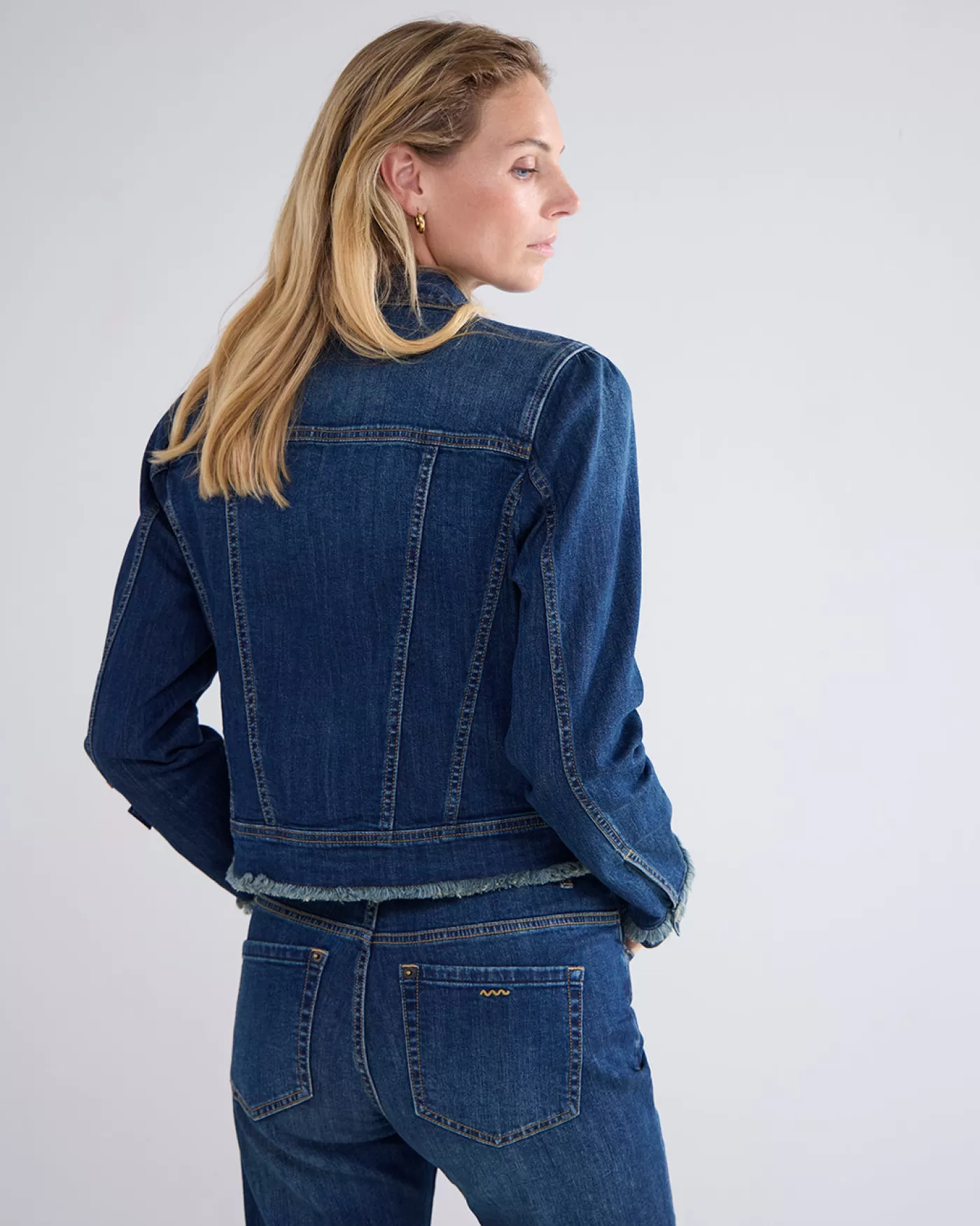 Slim fit denim jacket van lichte stretch denim. De spijkerjas heeft een lichte faded look en is afgewerkt met raw-edge details. slim fit lichte stretch denim raw edge details faded