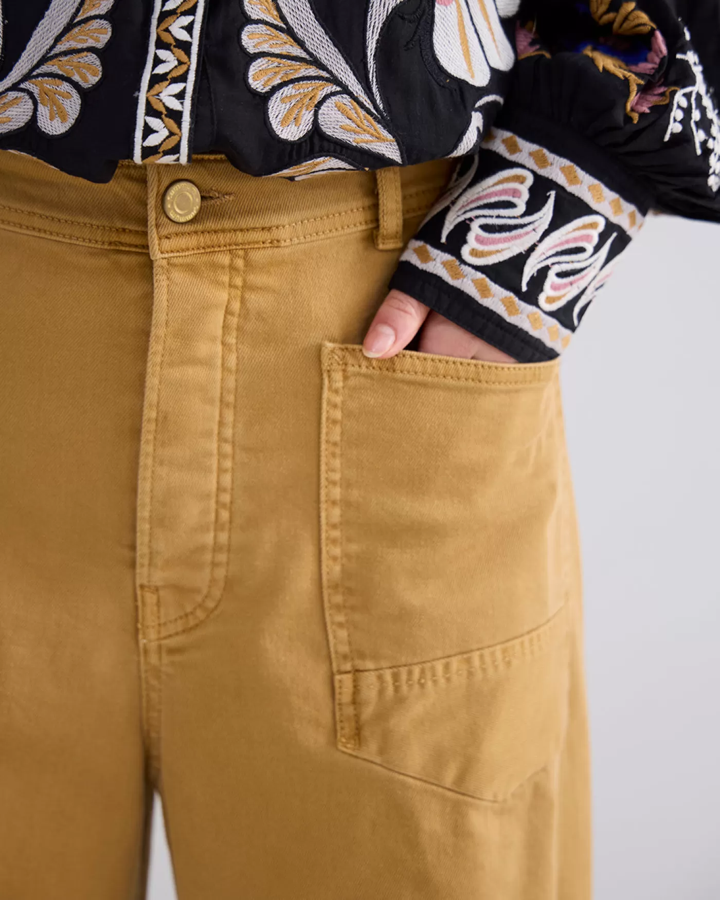 Broek met een mid-rise waist in een comfortabele stretch twill stof. De broek heeft opgestikte zakken aan de voorkant, een coupenaad bij de knieën en deelnaden over het zijbeen die zorgen voor een cocoon silhouette. mid-rise waist stretch twill opgestikte zakken coupenaadje