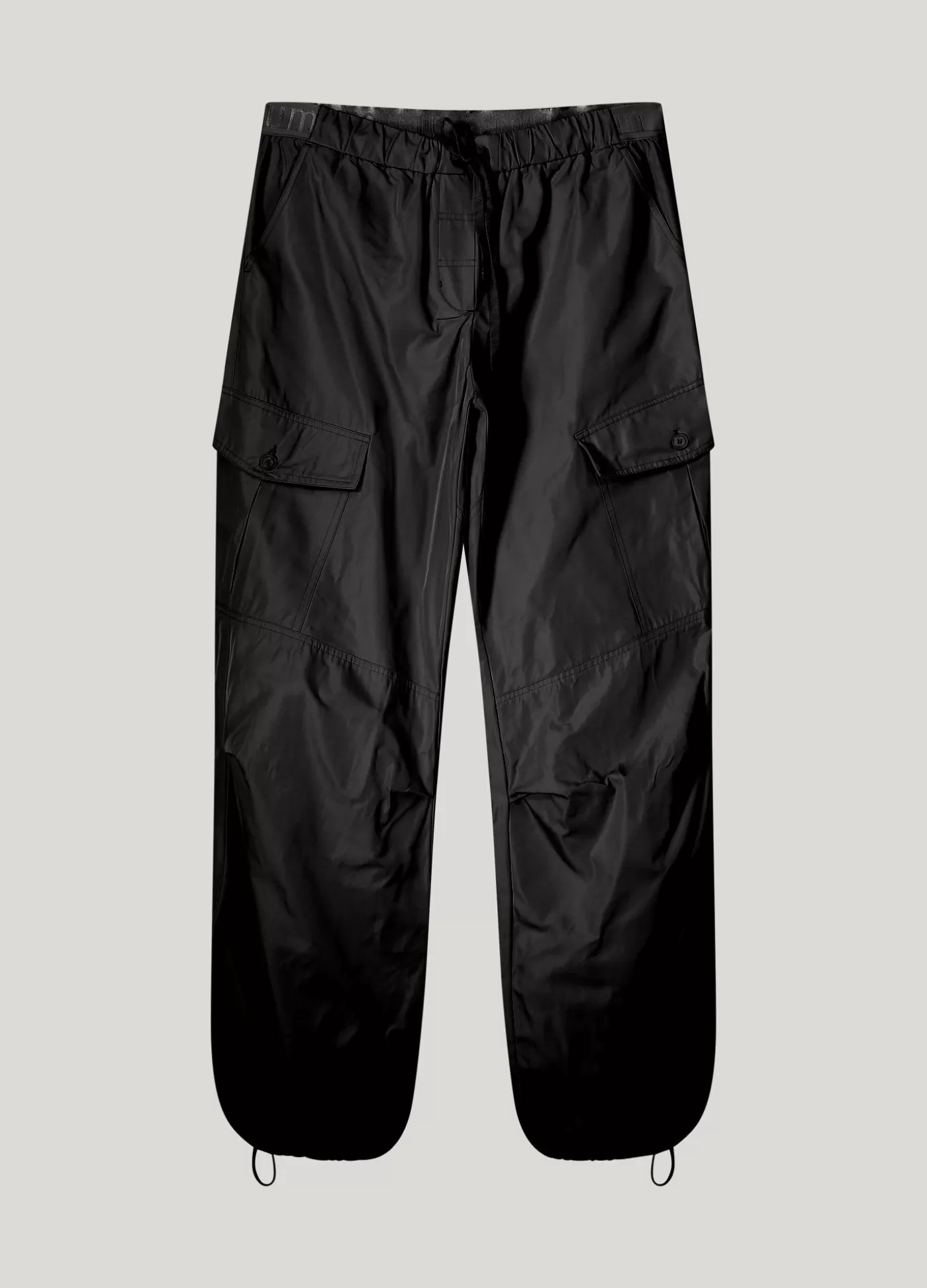 Cargobroek in taftstof met Summum-elastiek in de taille en rondom de knieën versierd met stiksel. De broek is voorzien …