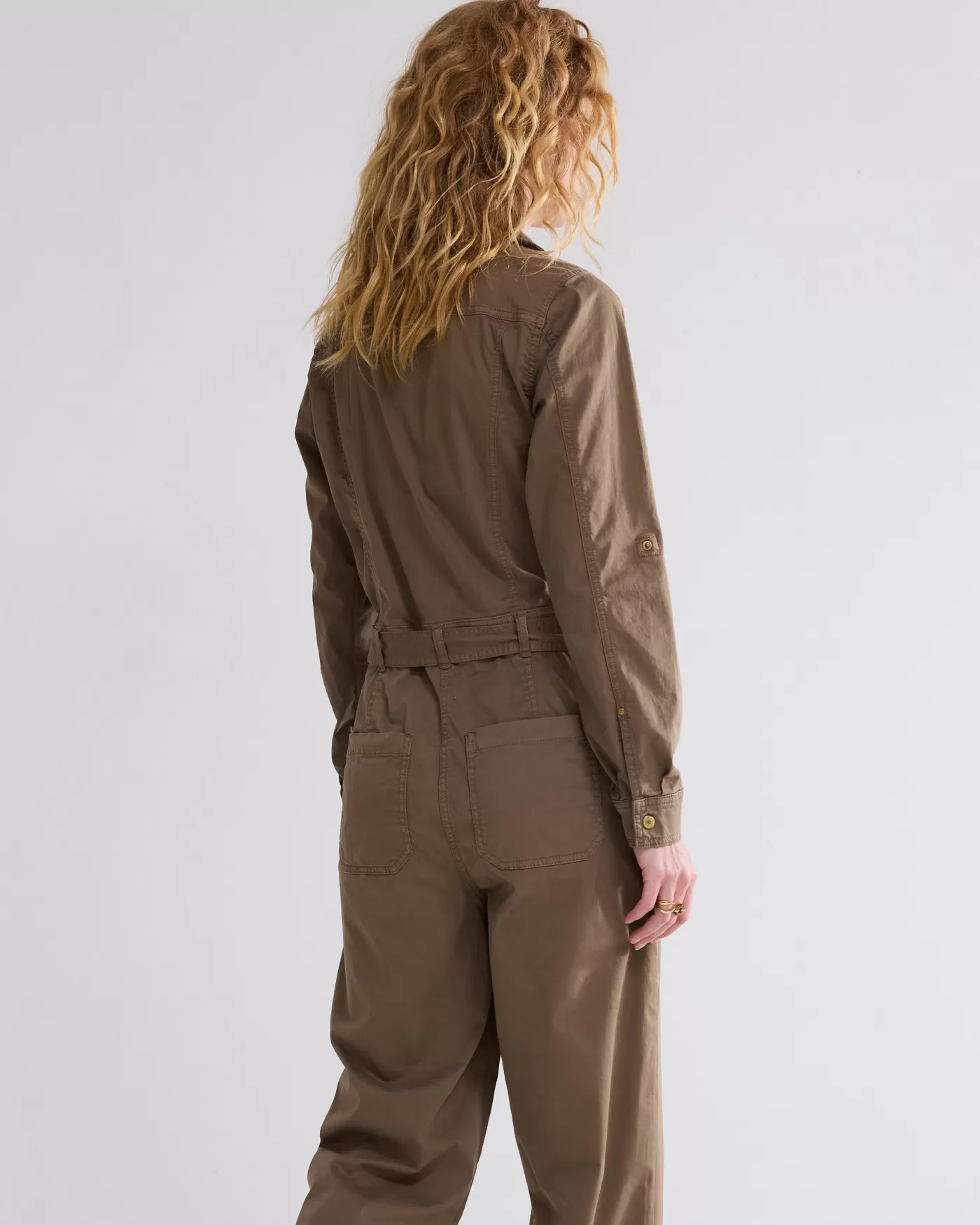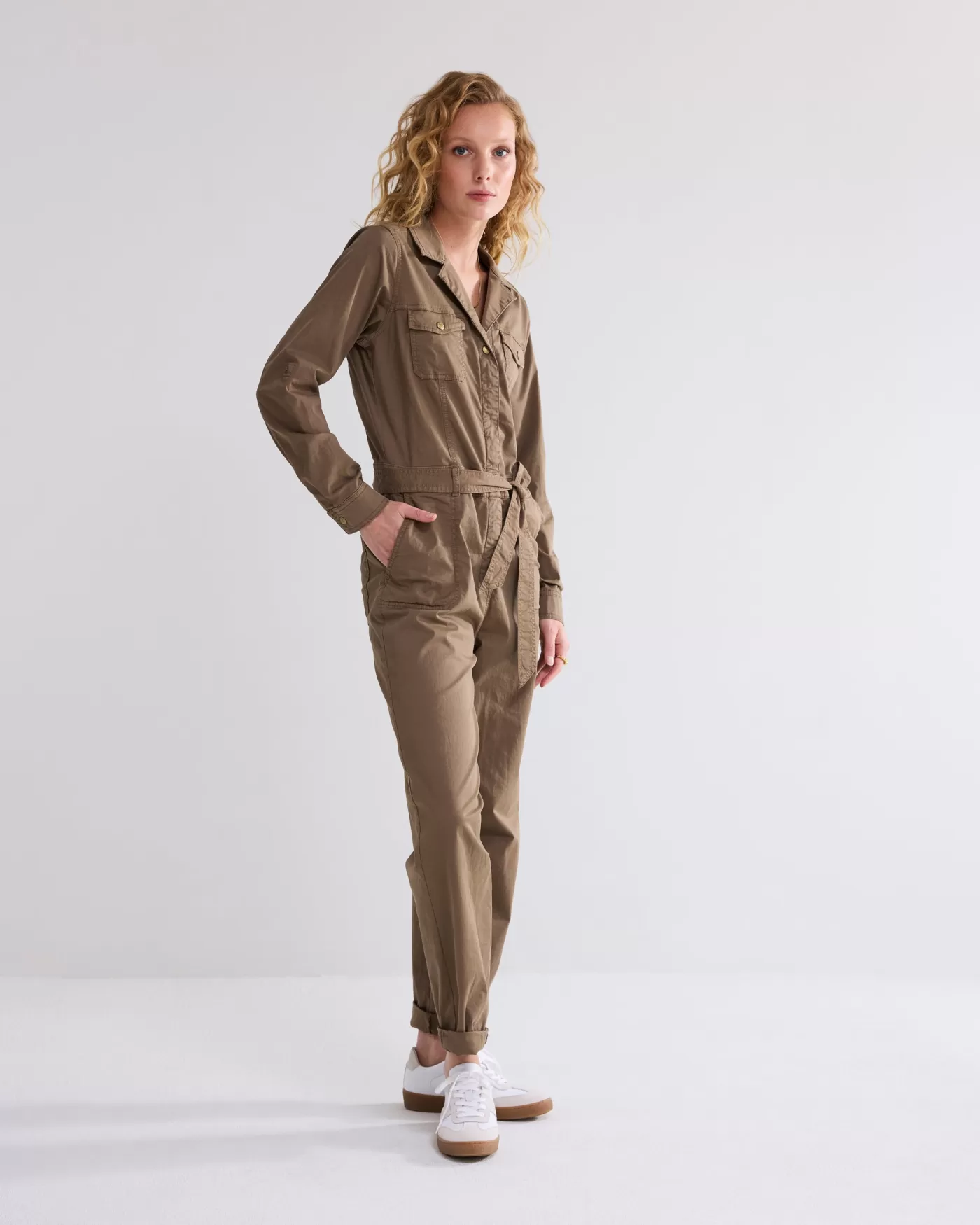 Cargostijl jumpsuit in een tencel twillstof. De jumpsuit heeft een ritssluiting met drukknoop en ceintuur in de taille. …