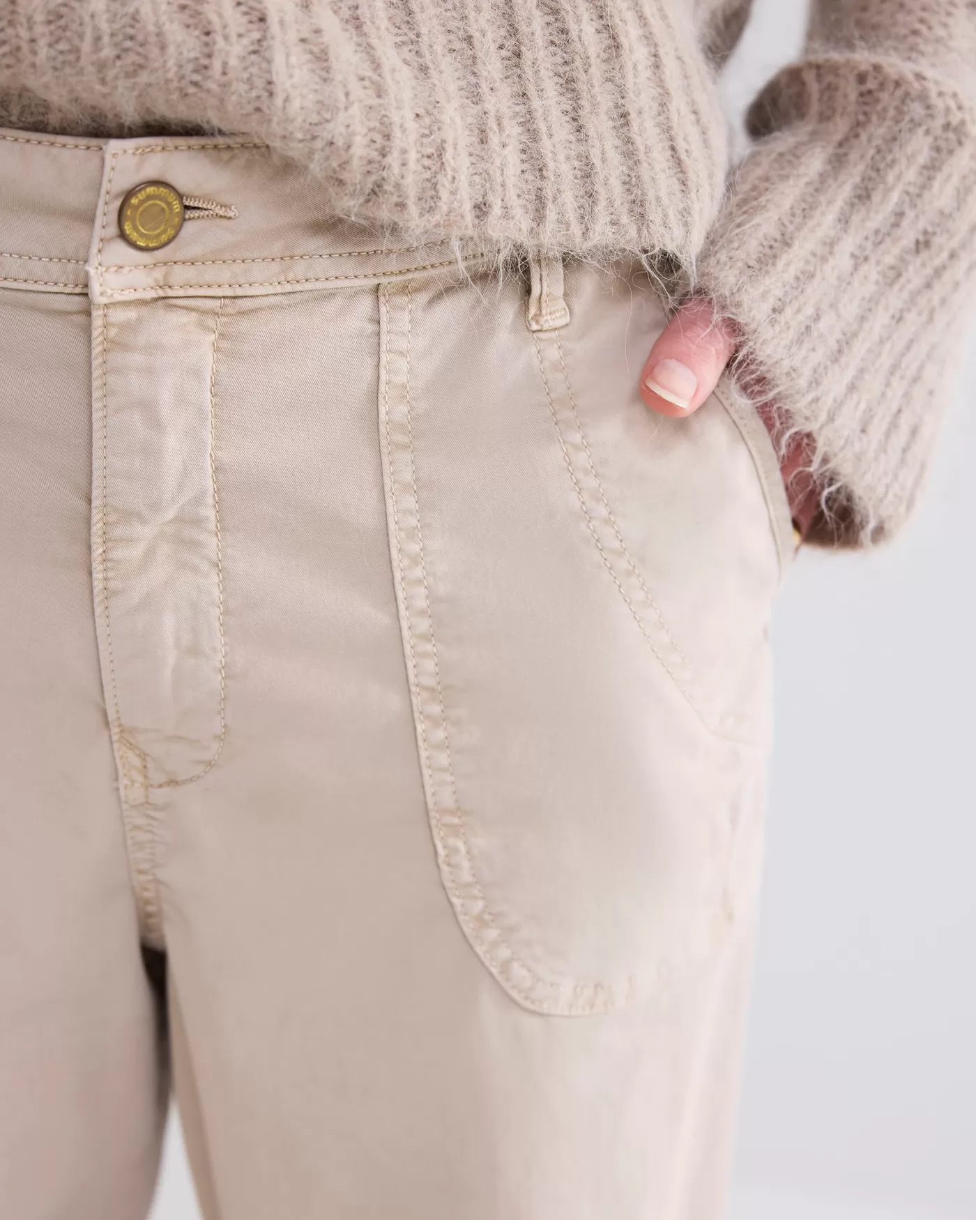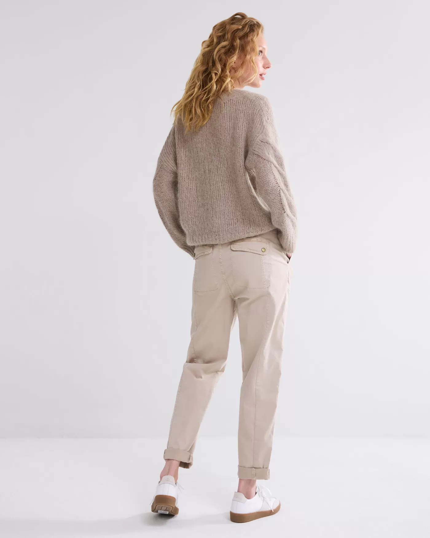 Broek met smalle pijpen en een koordsluiting in de taille. De broek heeft grote opgestikte steekzakken op het voorpand e…