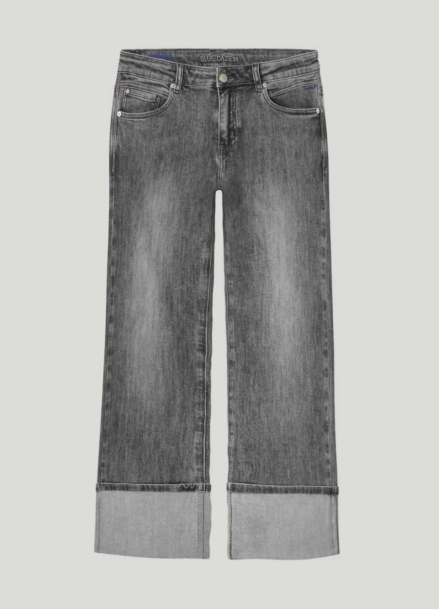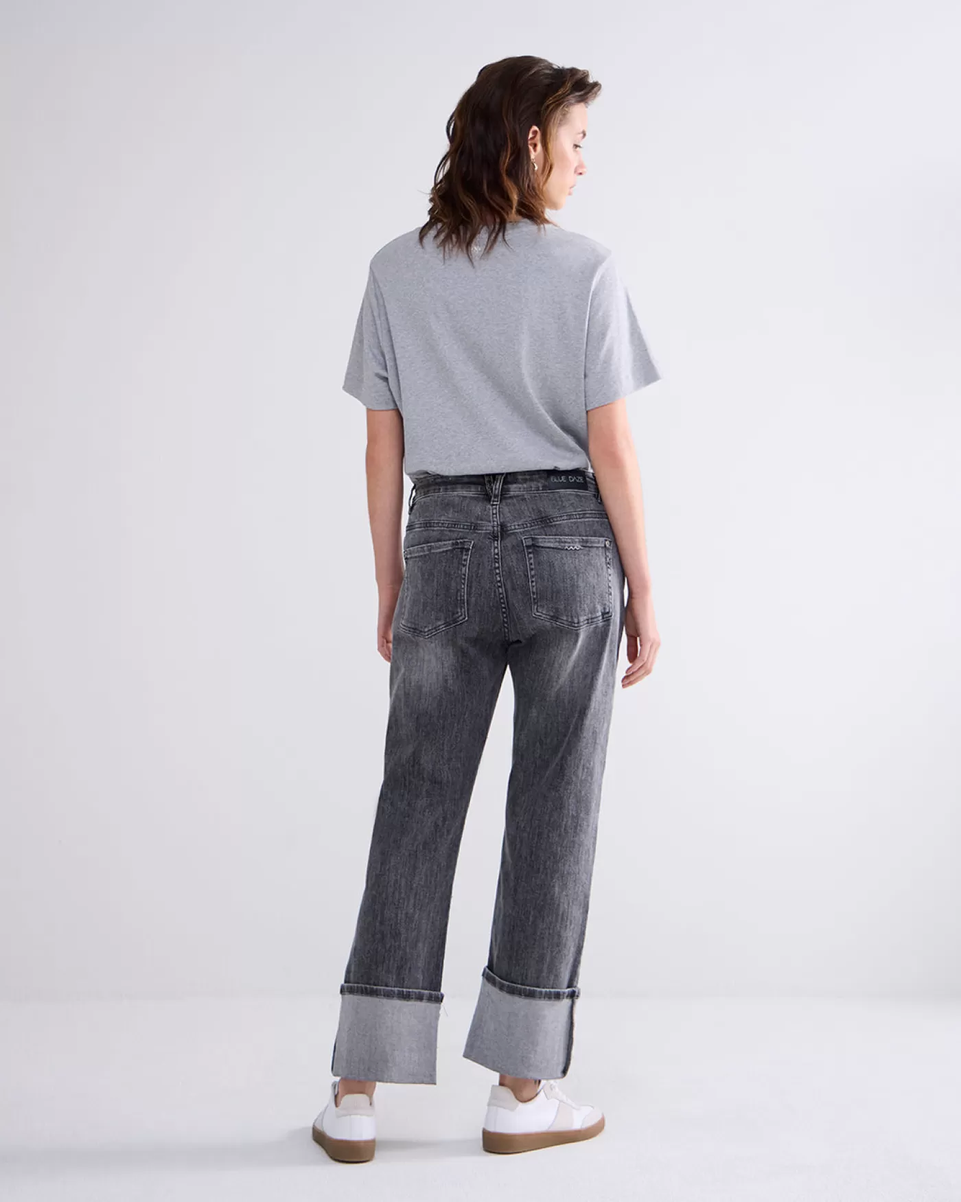 5-pocket SARIN-jeans met vastgezette omgevouwen pijpen in een gewassen, zwarte denim. De jeans heeft rechte pijpen en ee…