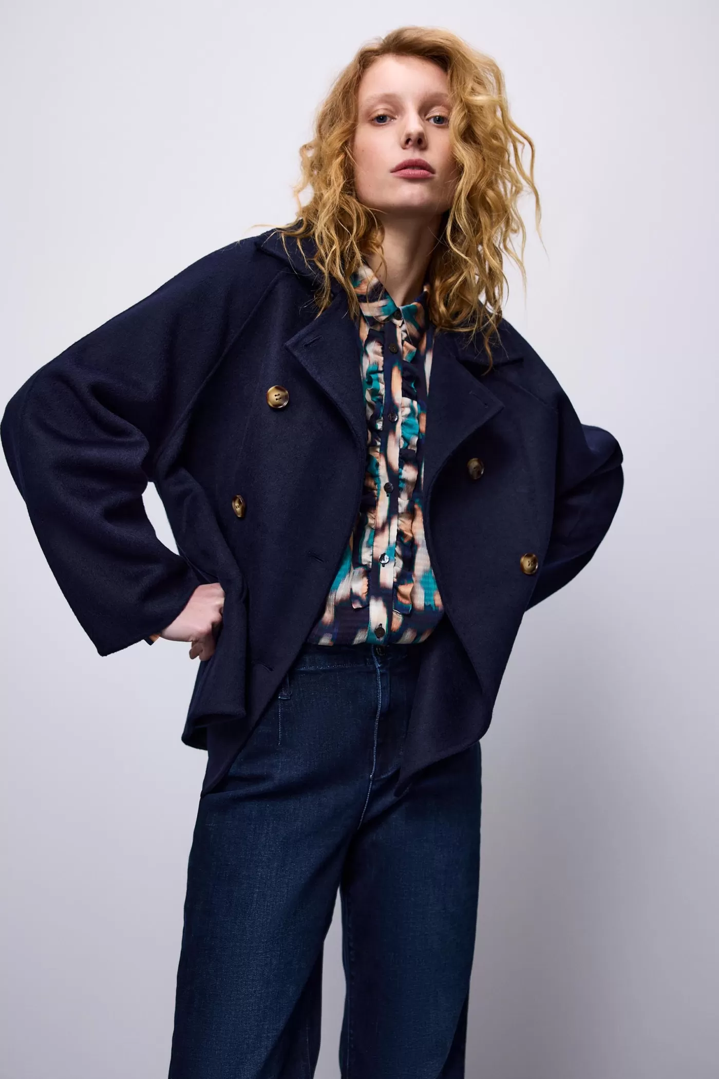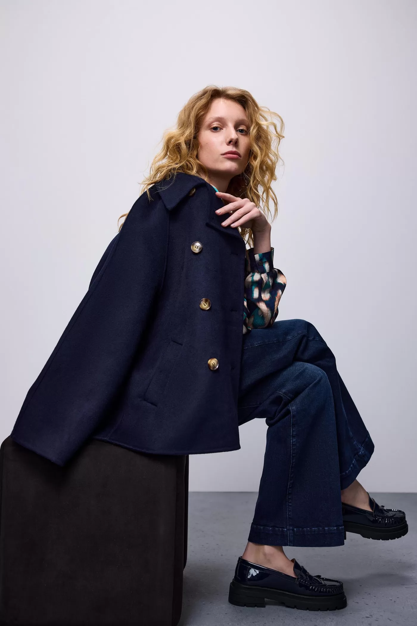 Kort jasje met een klassieke look in een ruime fit en gemaakt van een luxe wollen mix geweven stof. Het jasje heeft een dubbele rij knopen en strookzakken op het voorpand. luxe wollen mix dubbele rij knopen zakken op voorpand kort model