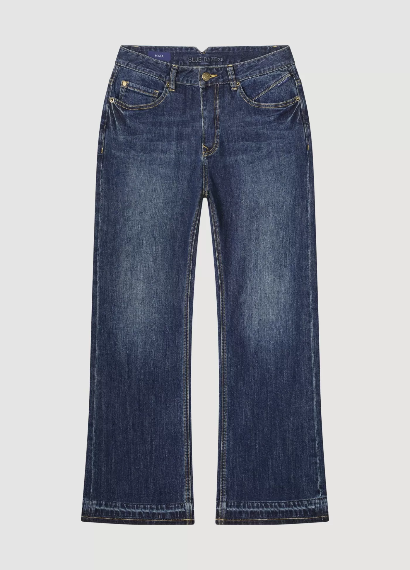 Bootcut cropped jeans met 5 zakken en gemaakt van lichte stretch denim. De jeans heeft een gewassen effect aan de onderk…