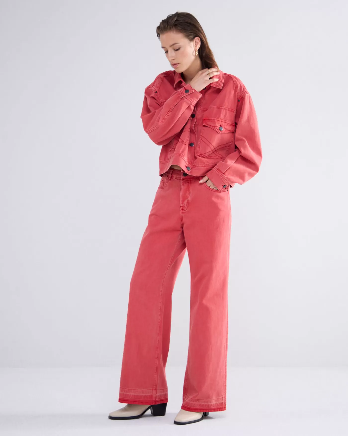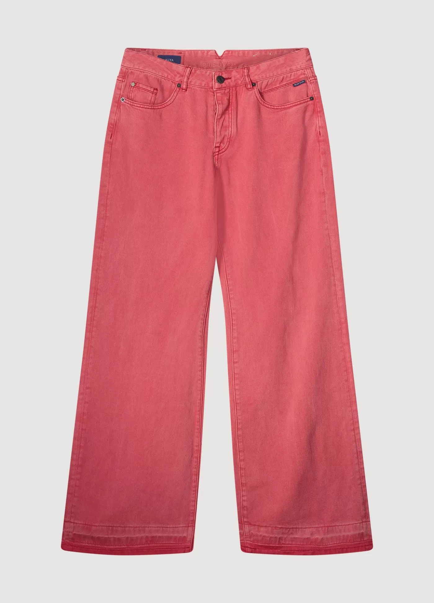 Wide leg jeans van non-stretch gekleurd denim. Met een gewassen effect aan de onderkant van de pijpen en een gulp met rits. wide leg fit non-stretch denim gewassen effect gulp met rits