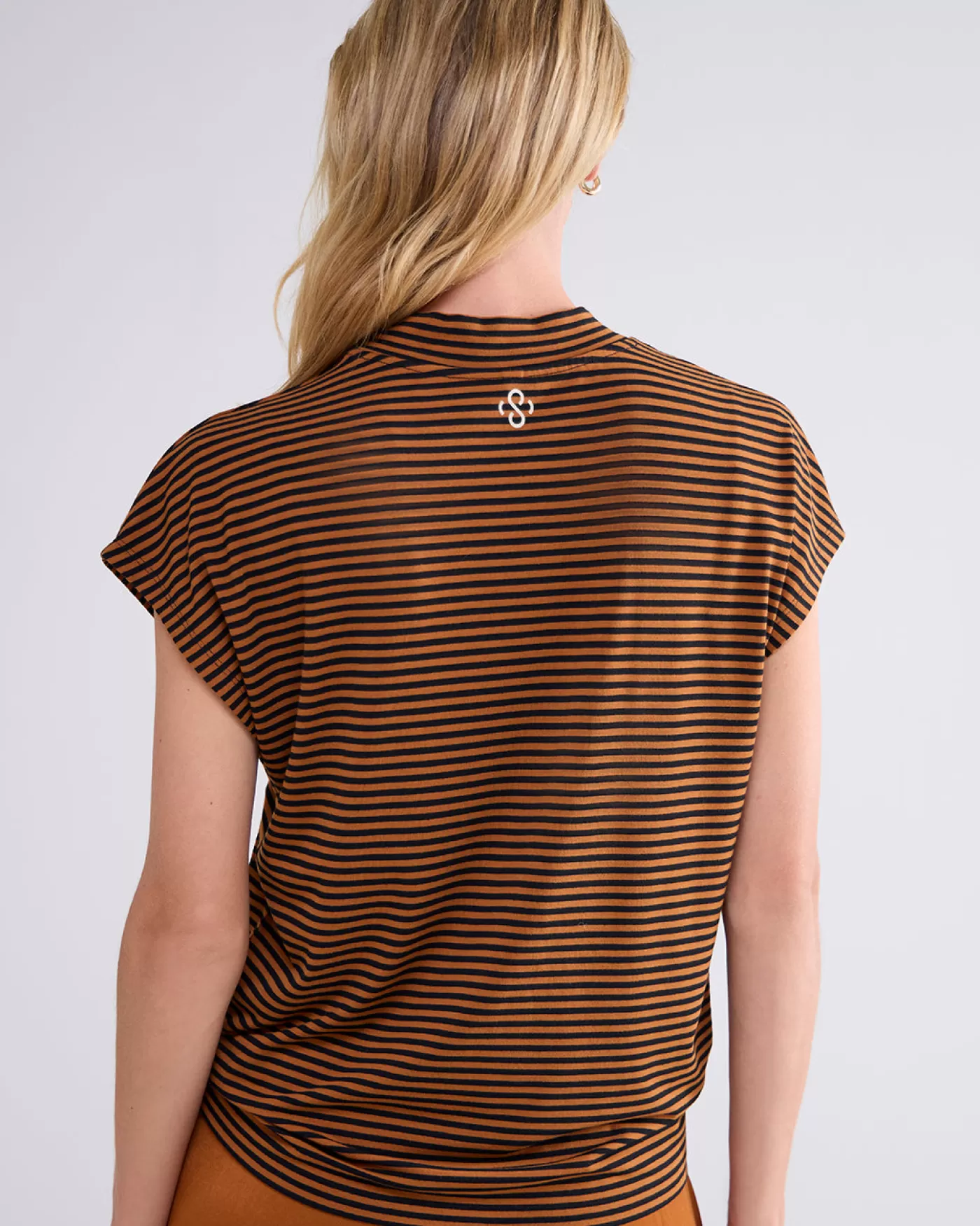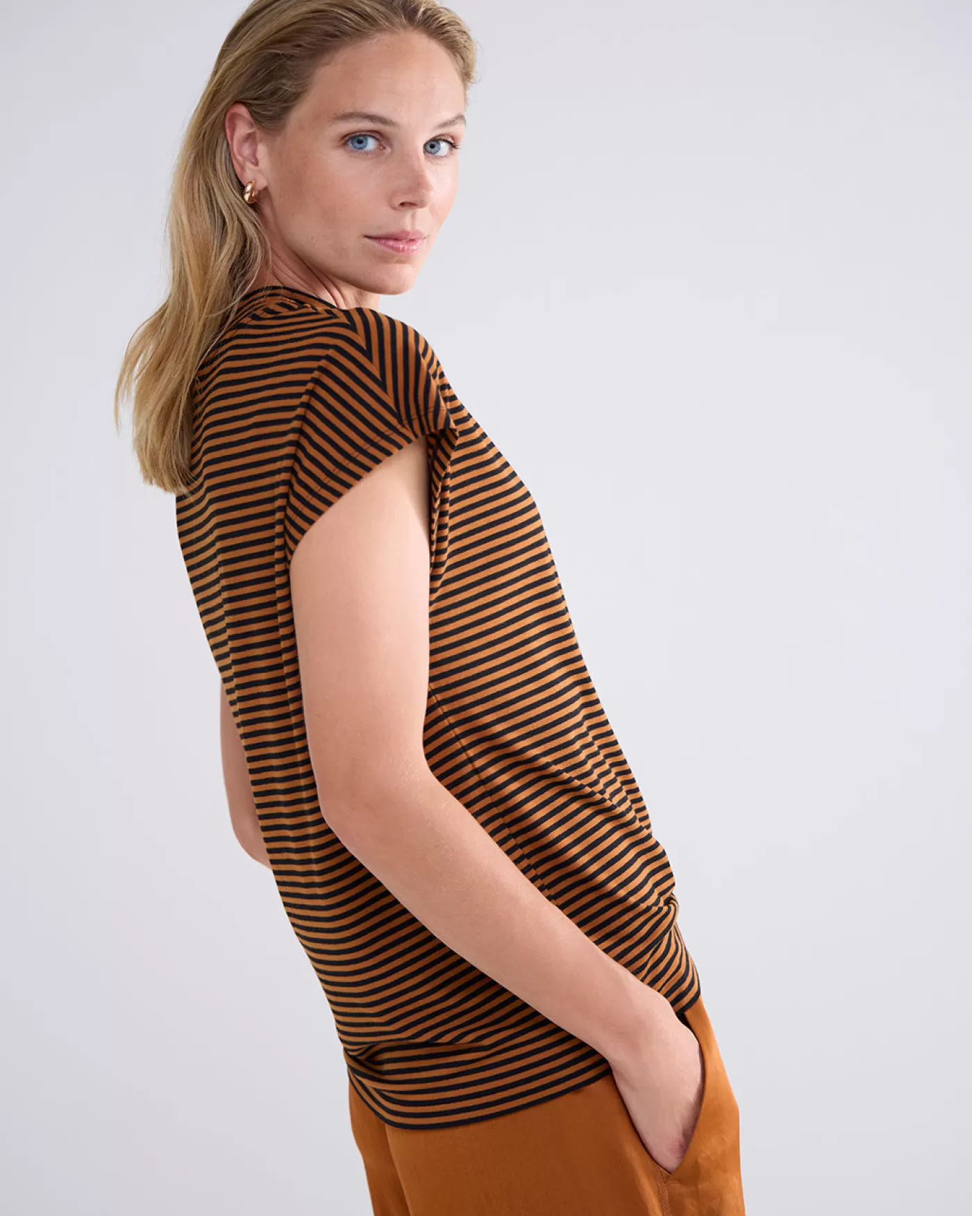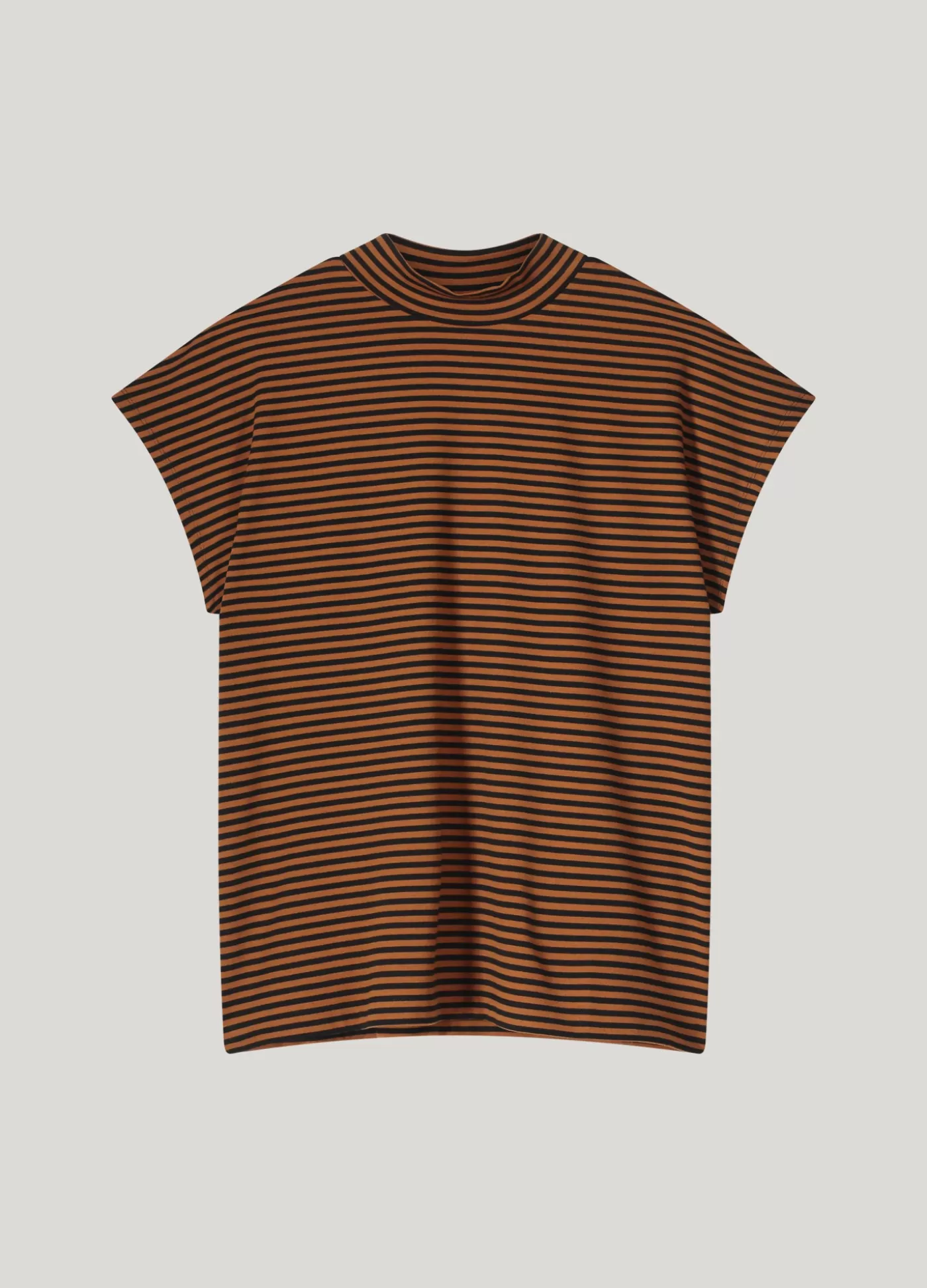 Top met een opstaande halslijn en aangeknipte korte mouwen. Uitgevoerd in een gestreepte jersey stof met een normale pasvorm. normale pasvorm opstaande halslijn aangeknipte korte mouwen gestreepte jersey