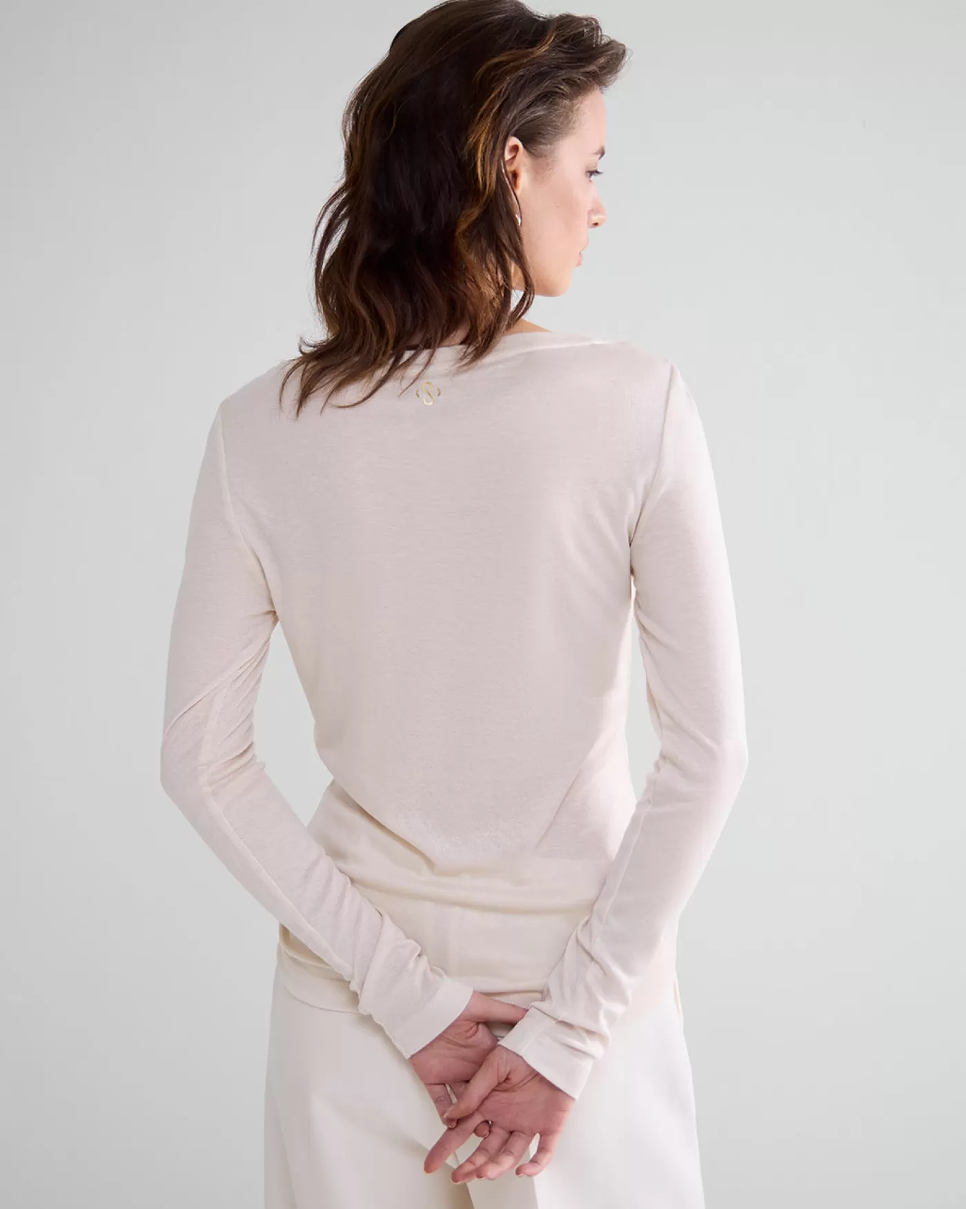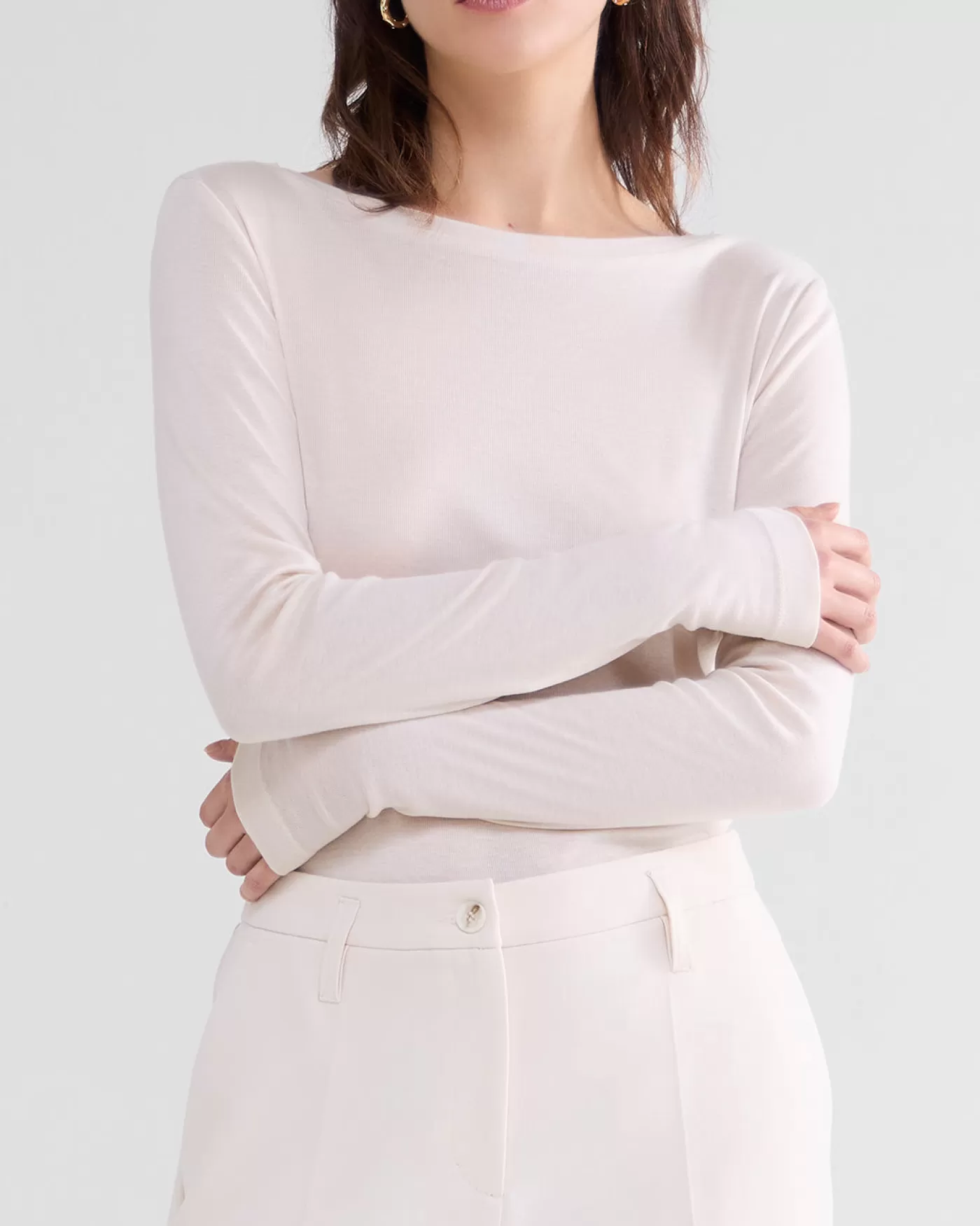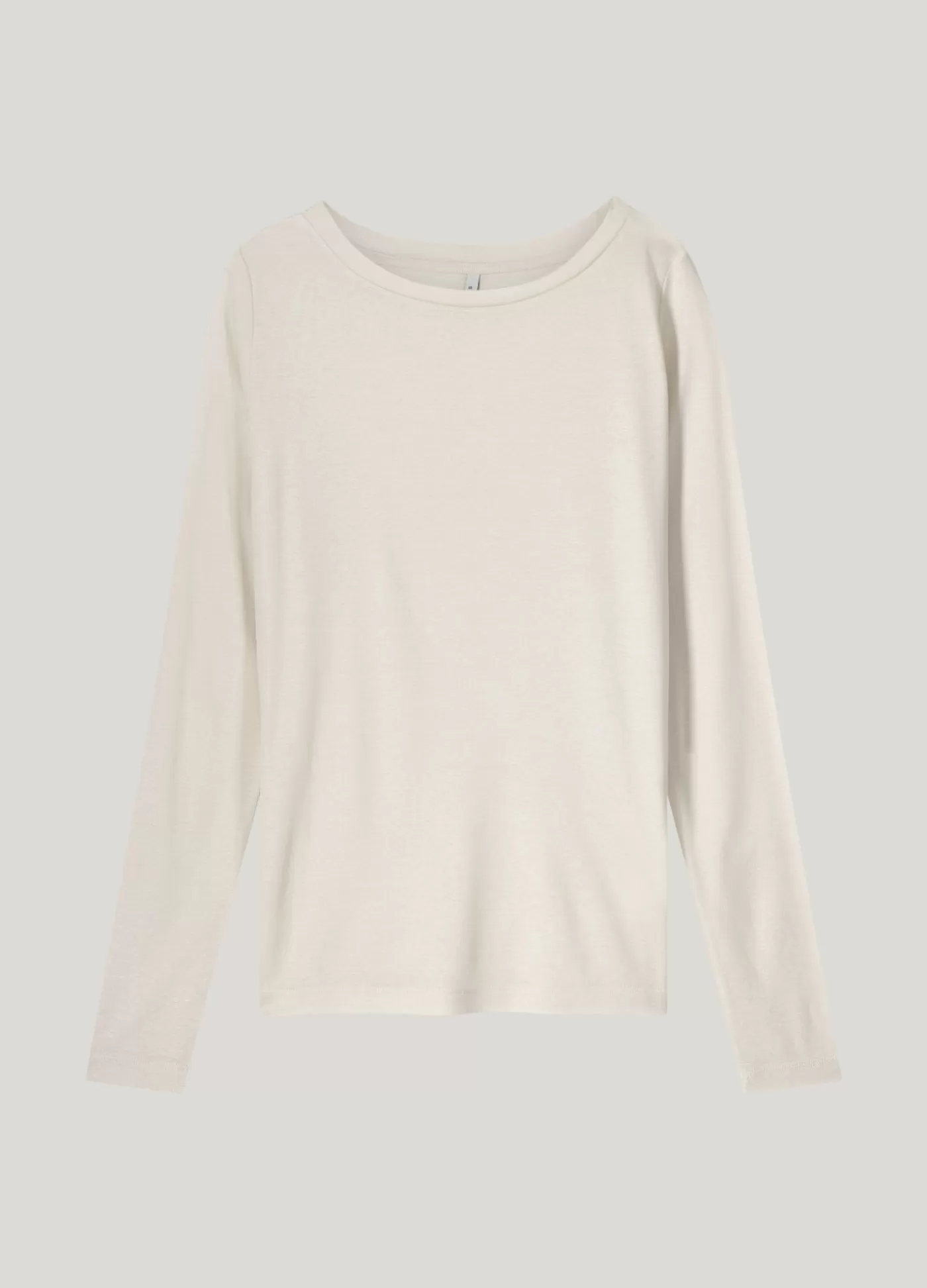 Longsleeve met boothals en lange mouwen, uitgevoerd in een rekbaar transparant jersey materiaal. De top heeft een aangesloten pasvorm. boothalslijn lange mouwen aangesloten pasvorm rekbaar transparant jersey