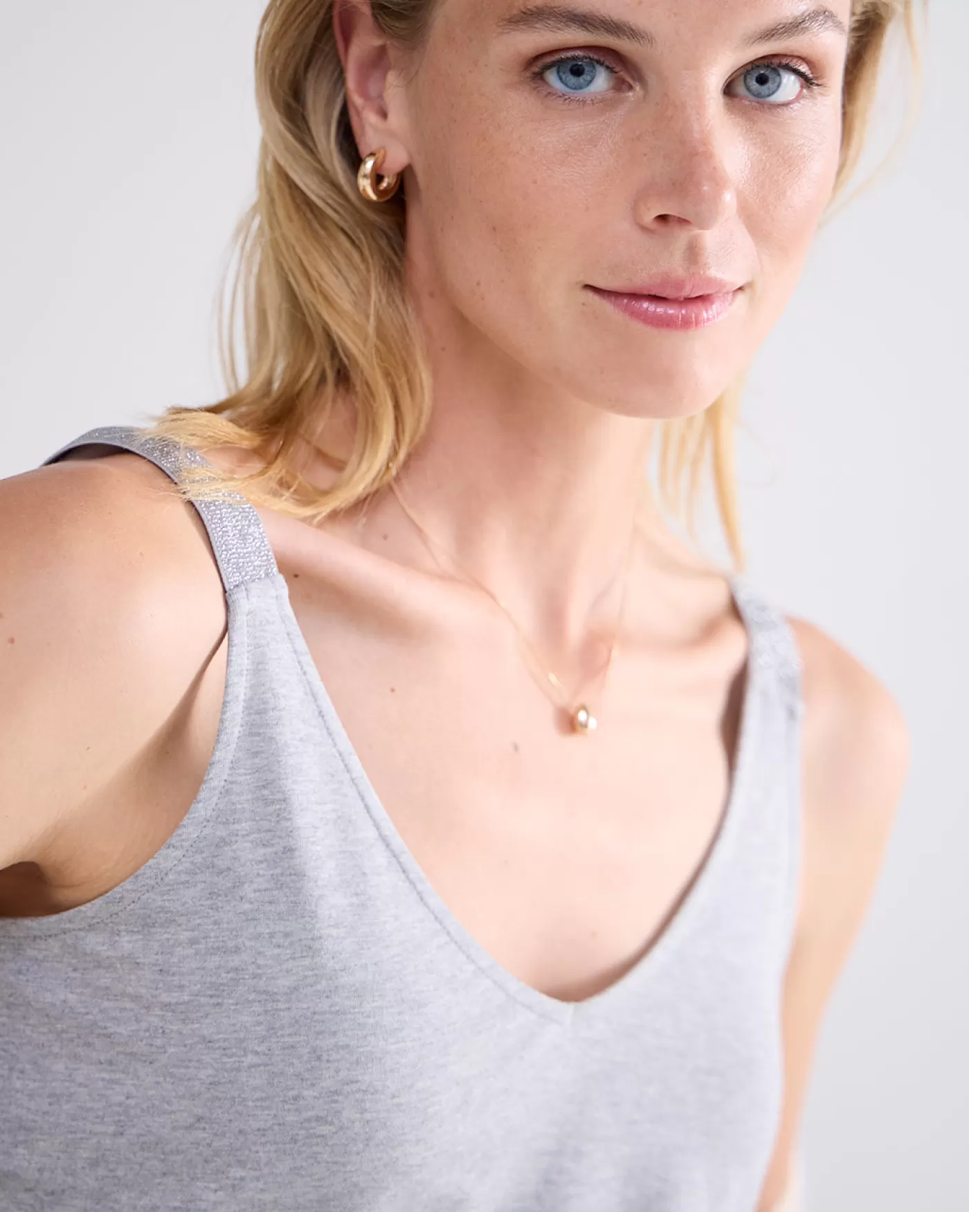 Klassiek hemdje met glitterbandjes dat aan beide kanten gedragen kan worden. Het singlet is gemaakt van stretchkatoen en heeft een slim fit pasvorm. slim fit ronde u0026amp; V-hals brede schouderbandjes van fijne stretch kwaliteit glitter op de bandjes