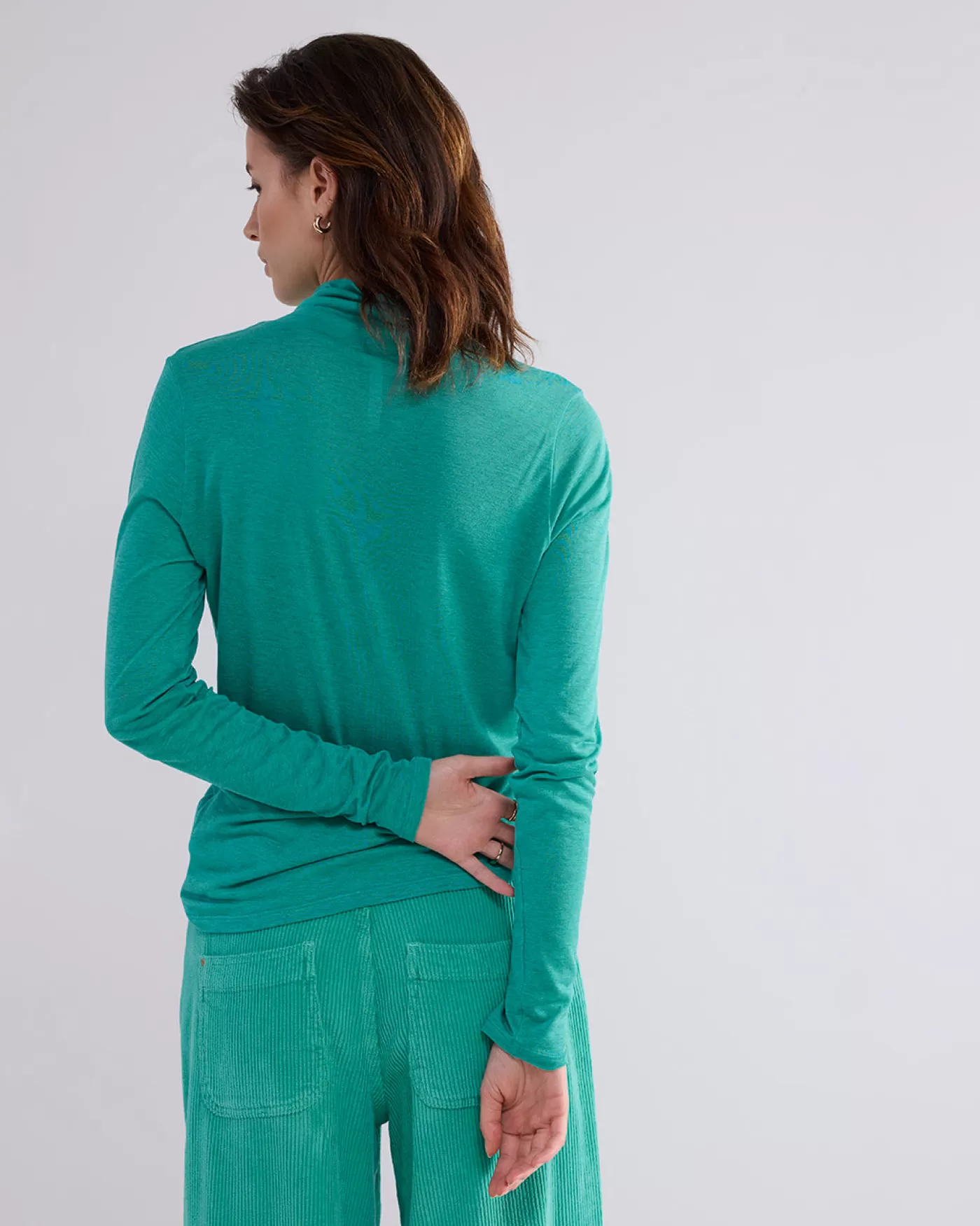 Nauwsluitende coltrui met lange mouwen. De top is gemaakt van een viscose-wolmix in een rekbare jersey kwaliteit. lage col lange mouw nauwsluitend viscose-wolmix