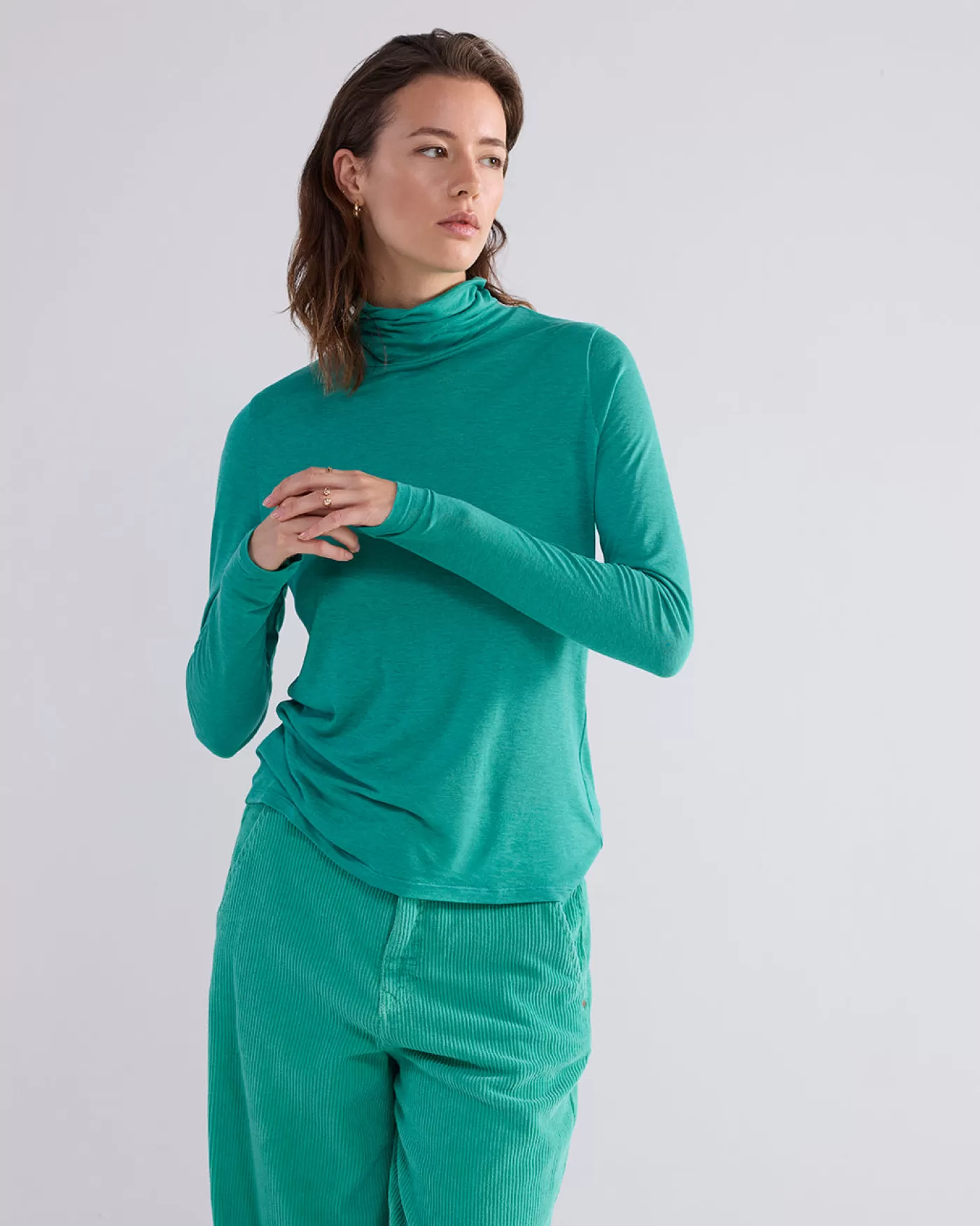 Nauwsluitende coltrui met lange mouwen. De top is gemaakt van een viscose-wolmix in een rekbare jersey kwaliteit.lage co…