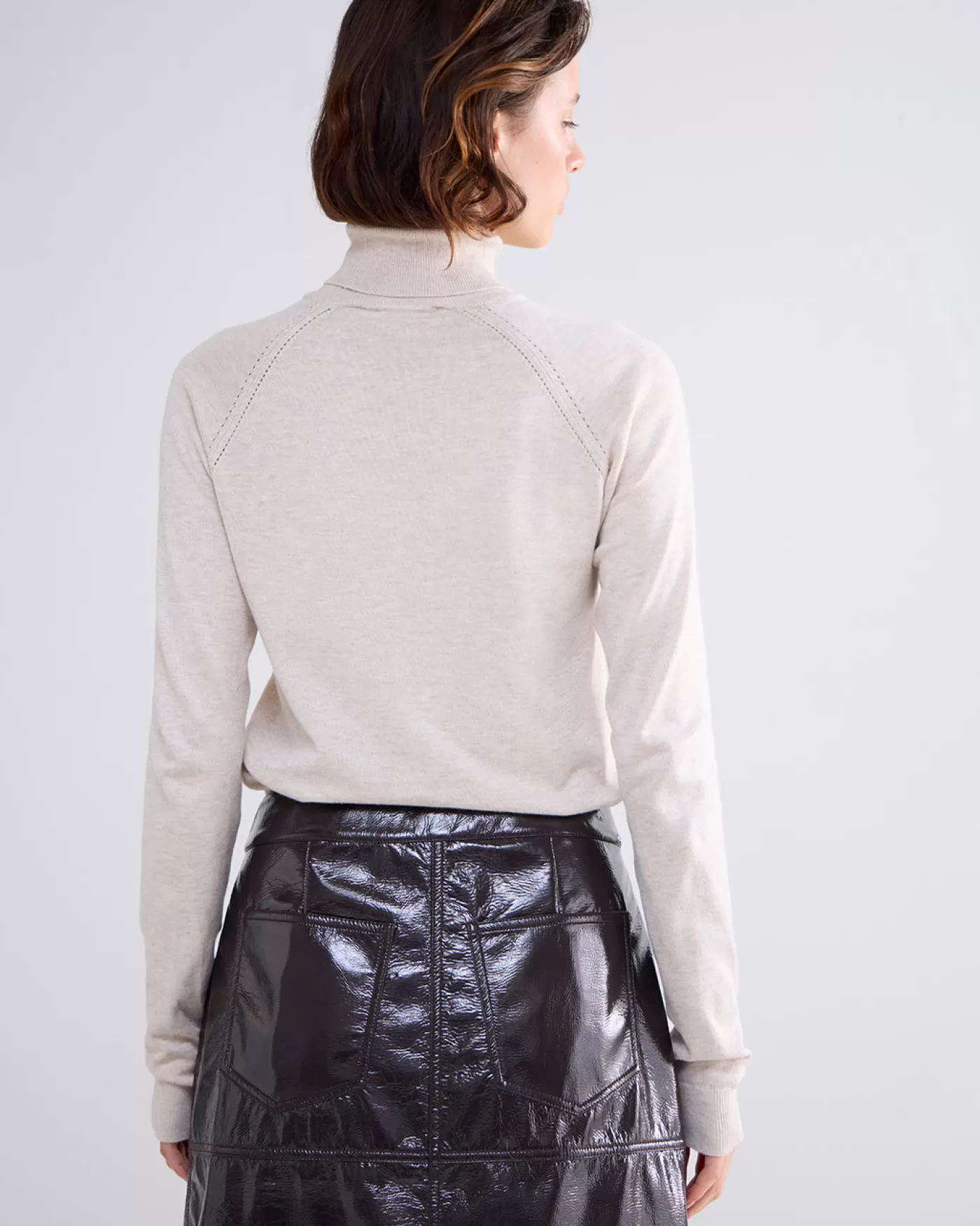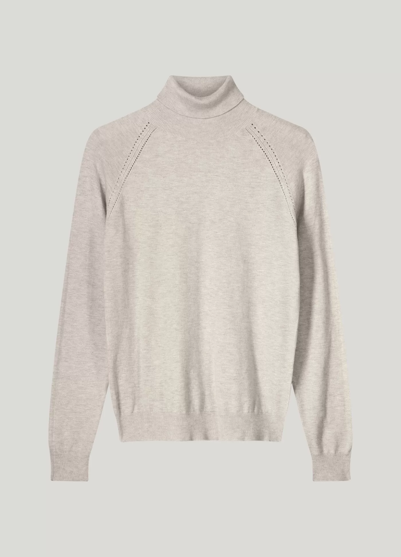 Een aansluitende coltrui van zachte kwaliteit met lange raglanmouwen. aangesloten pasvorm coltrui viscose polyamide garen compact gebreid