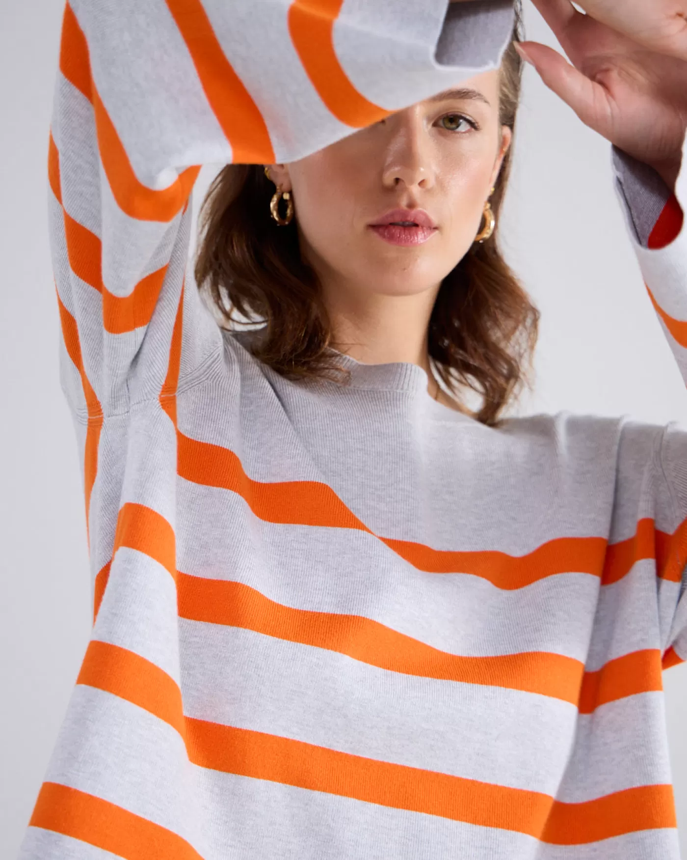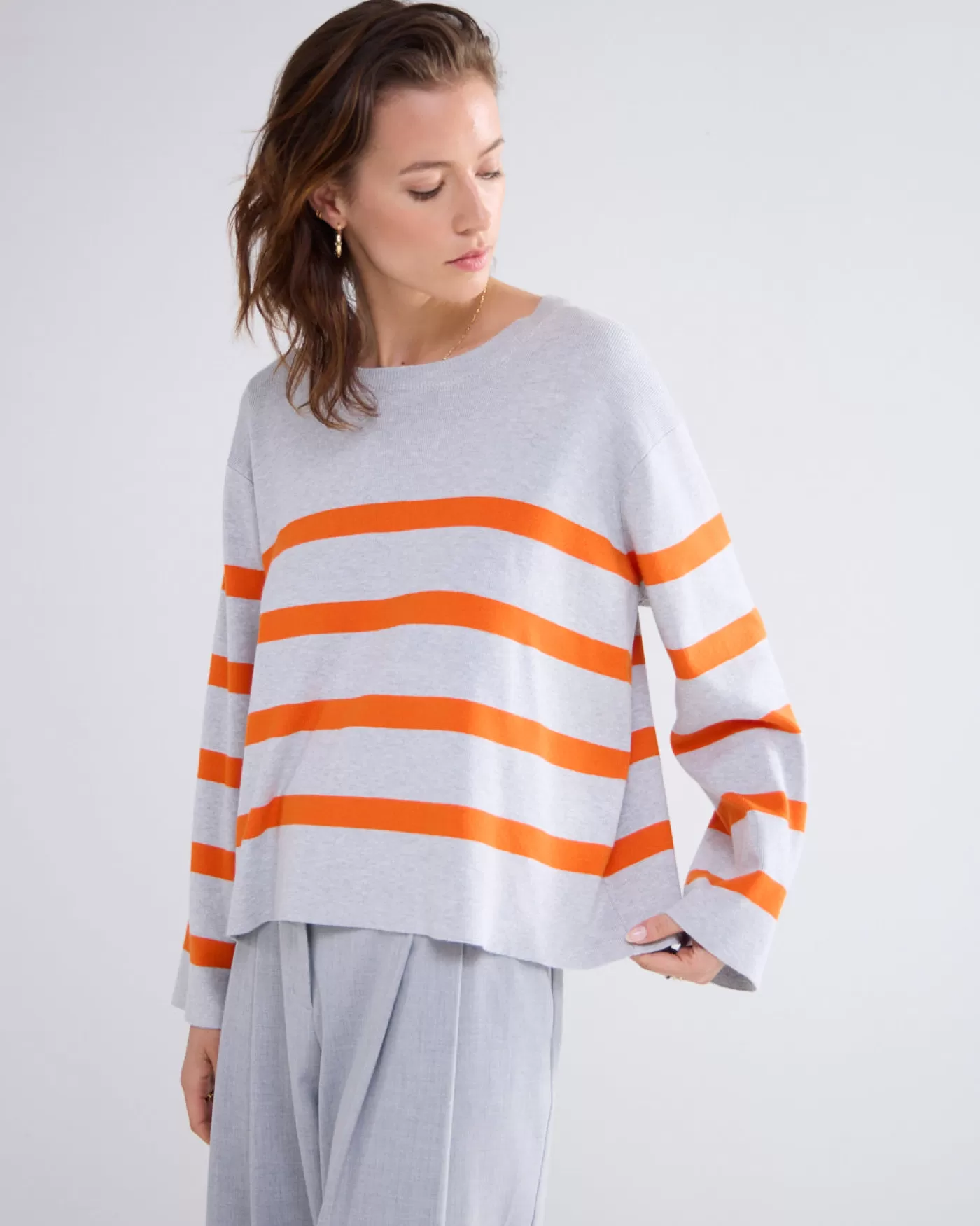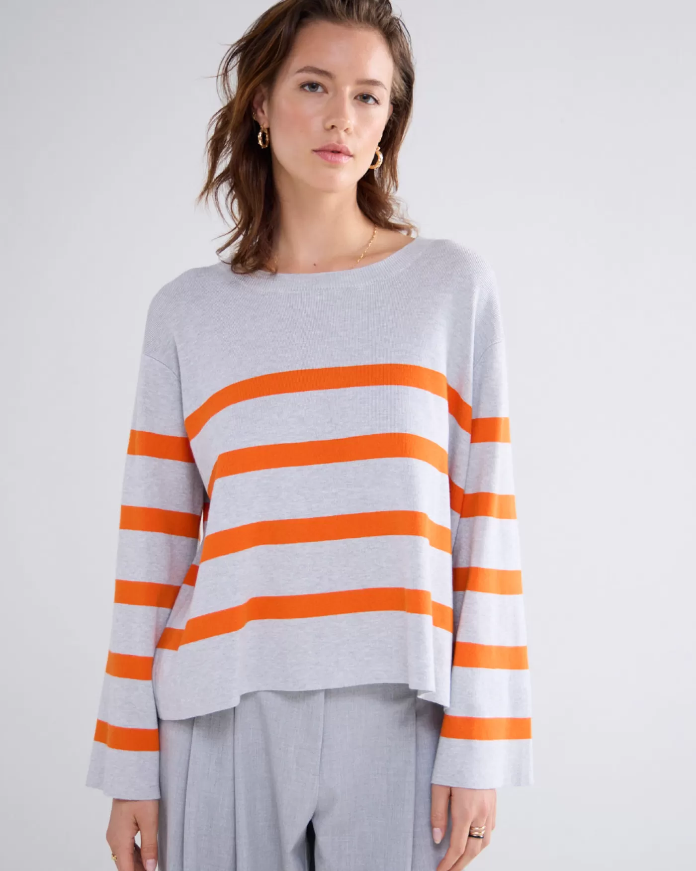 Boxy sweater met ronde hals en ietwat wijdere mouwen. De trui is gemaakt met ingebreide strepen van een compact viscose …