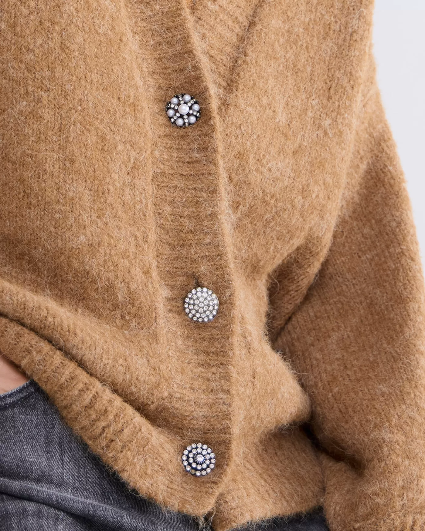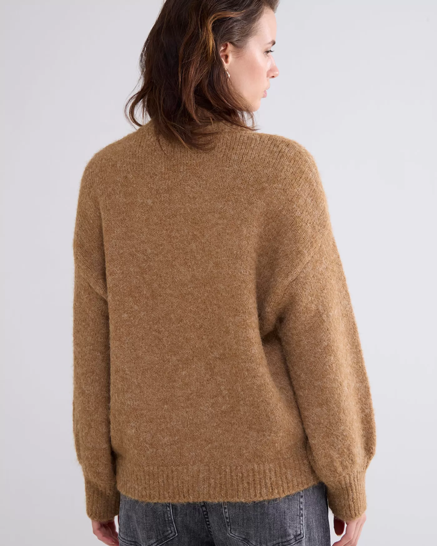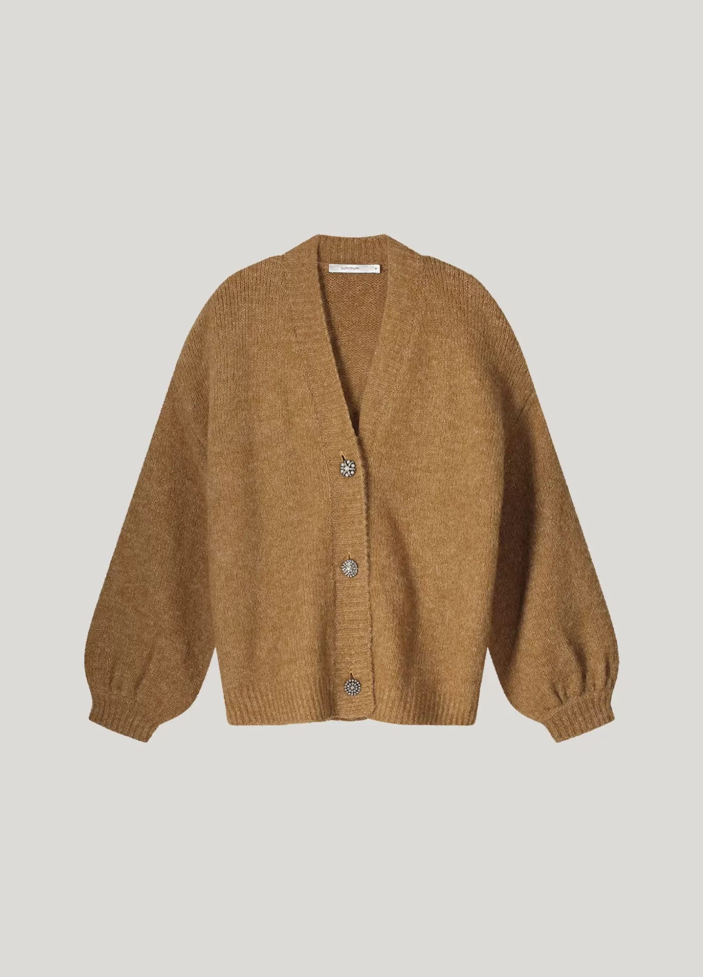 Oversized vest met brede pofmouwen, gebreid in een zeer zacht garen. De broches zijn afneembaar. Het vest heeft een knoopsluiting met verschillende knopen en een verlaagde mouwaanzet. gemêleerd oversized verschillende knopen verlaagde mouwaanzet