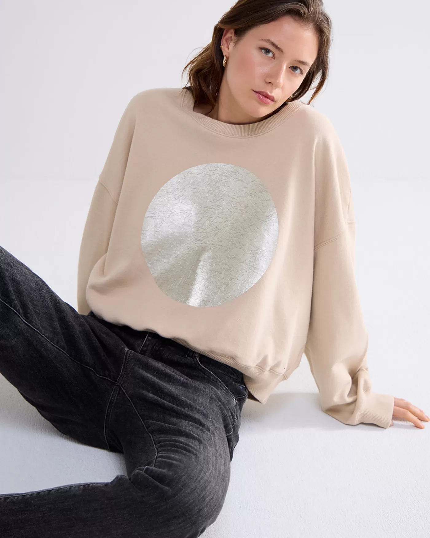 Sweater met ruime pasvorm en ronde halslijn, gemaakt van katoenen jersey. De top is voorzien van lange mouwen en metallic bedrukt artwork op het voorpand. ruime fit ronde halslijn metallic artwork katoenen jersey