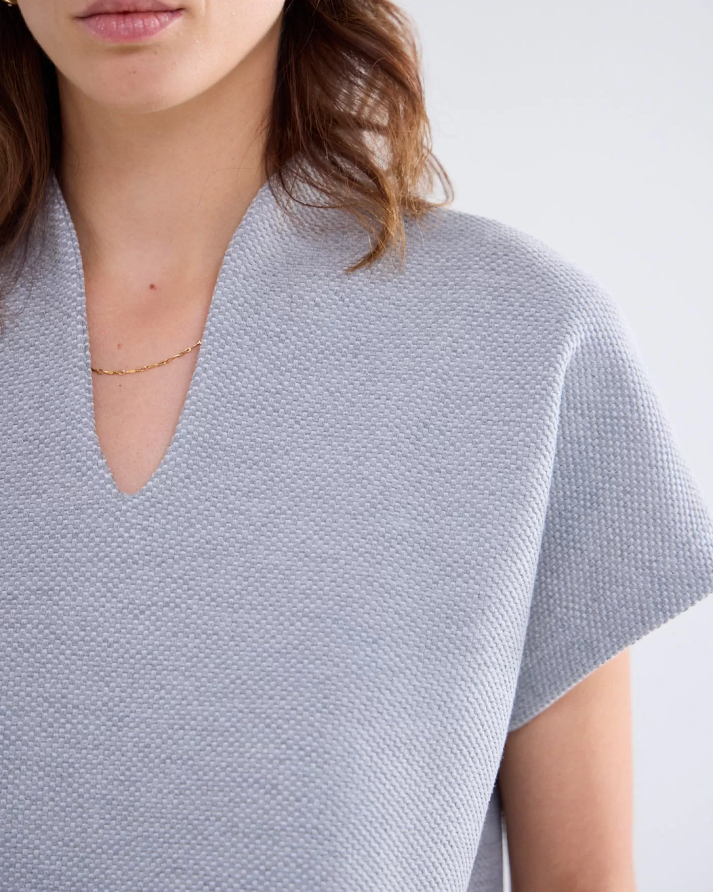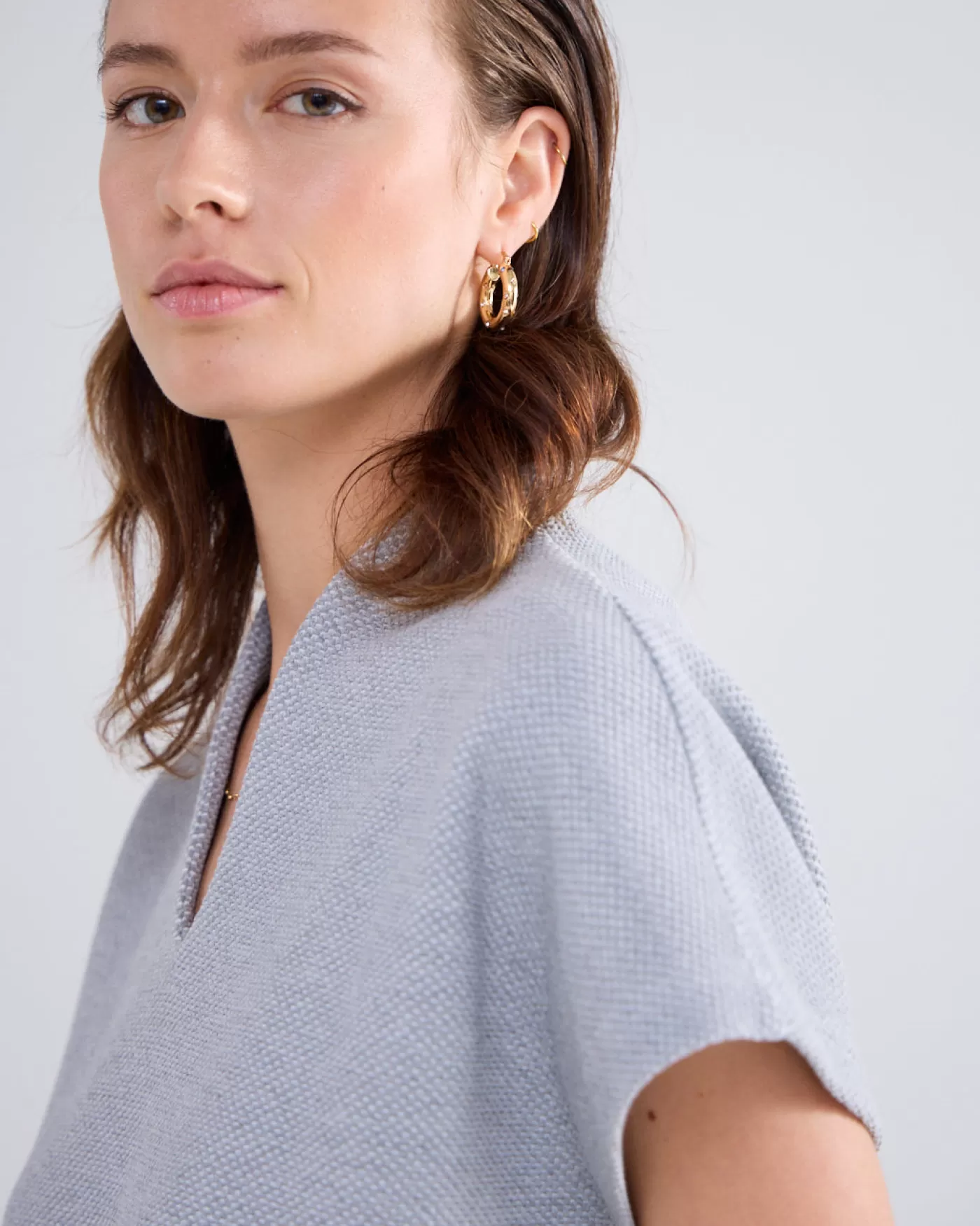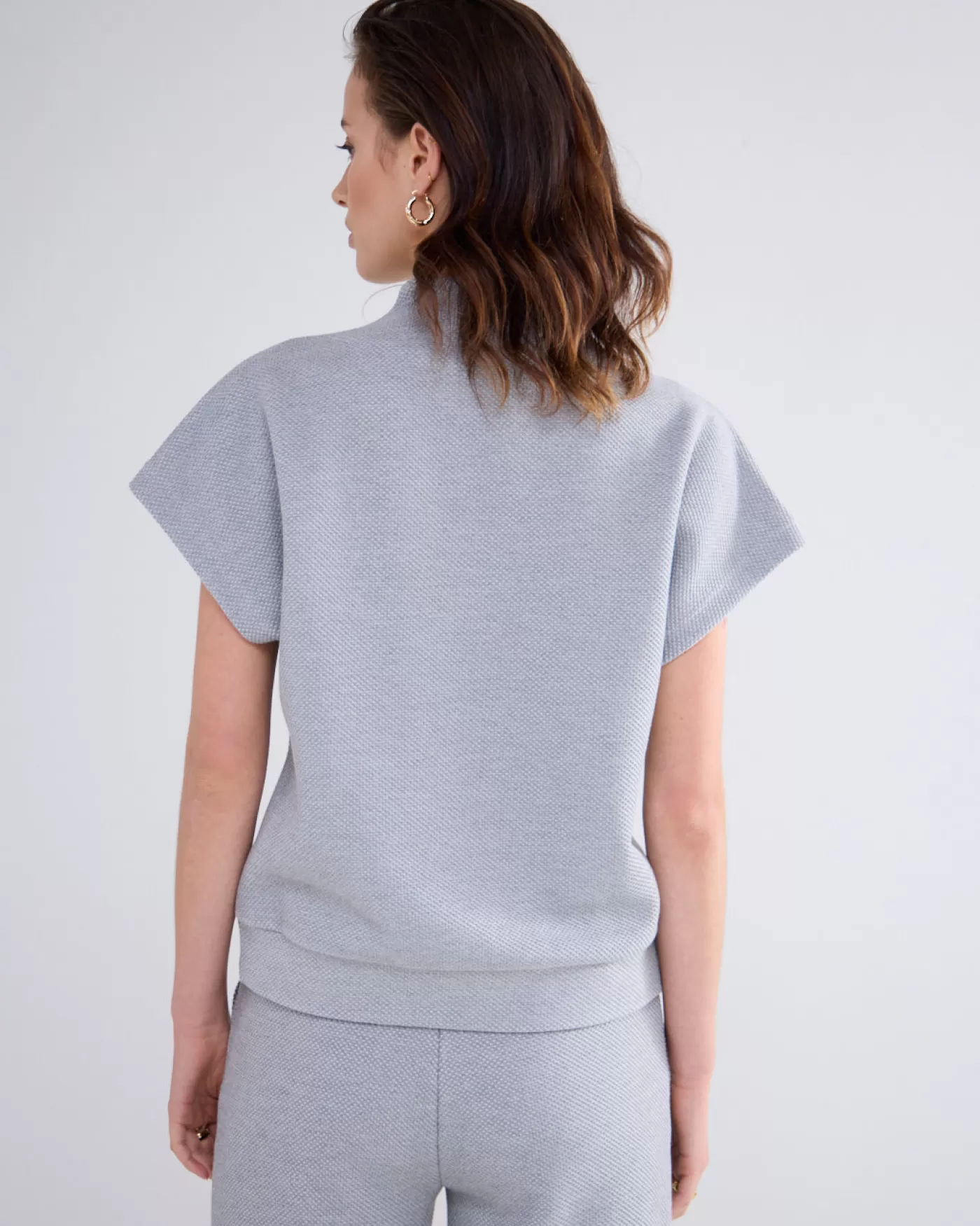 Top met aangeknipte mouwtjes, gemaakt van een comfortabele, stevige wafelstructuur jersey. De top heeft een normale snit en een iets opstaand kraagje. normale pasvorm korte mouwen opstaande kraag wafelstructuur jersey