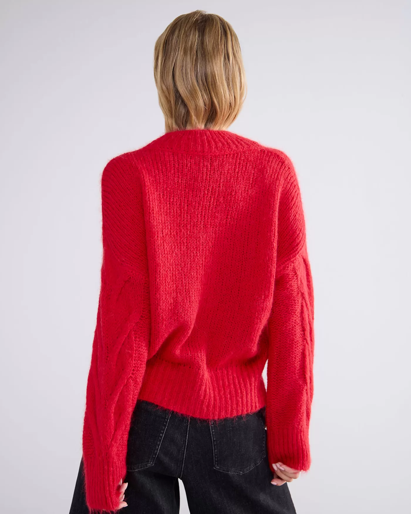 Stoere trui met grote ingebreide kabels op het voorpand en de mouwen. Gemaakt van een prachtige blend van 50% alpaca en 50% polyamide. normale fit ingebreide kabels alpaca-polyamide blend brede geribde boorden