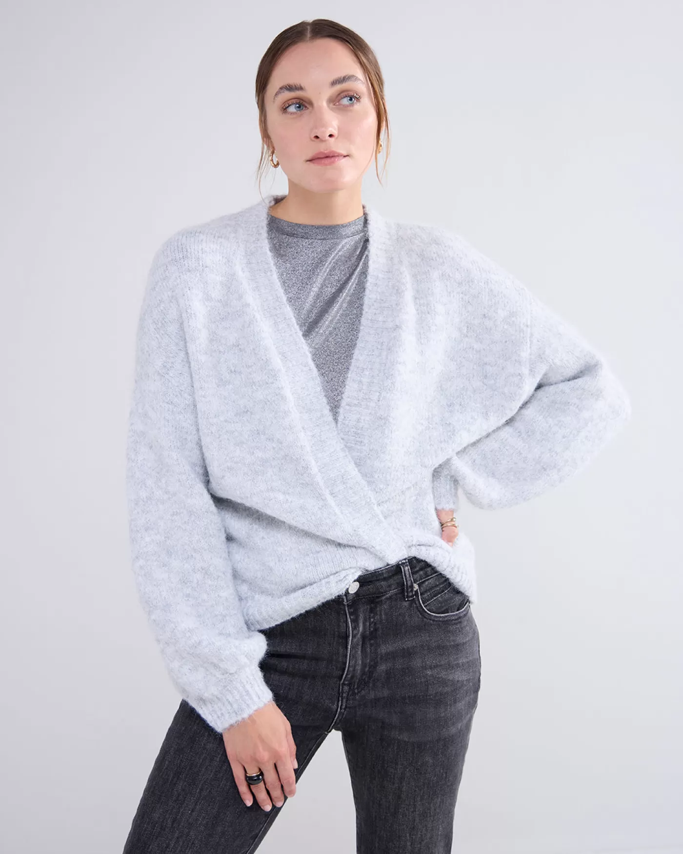 Heerlijk zacht vest zonder sluiting met grote pofmouwen en met geribde boorden. geen sluiting pofmouwen zachte stof geri…